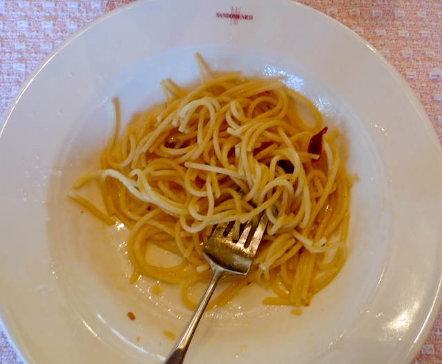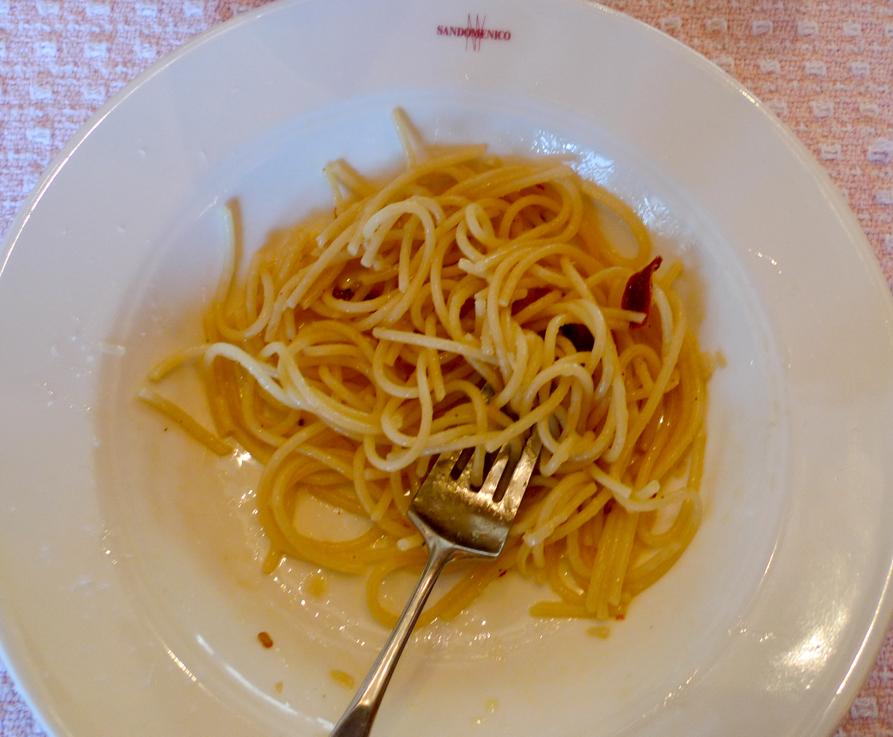 Great quality organic spaghetti with garlic, sun dried tomatoes, hot pepper and colatura