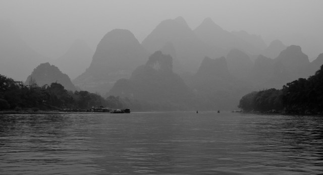 We had less than a day to explore, but by booking a private tour with a guide and a speedboat, we were able to pack in three hours along the river and lunch in Yangshuo, taking pictures all the way, before flying back to Hong Kong that afternoon. The outline of the dark mountains, looming behind the vegetation along the river, reminded me of some stock price charts I have seen. Sometimes the reflection of those shapes on the quiet stretches of water brought to mind the patterns of audio files which embody the terms “plus and minus X dB” with their symmetry. Samples are below, and the full website of our photos is here.