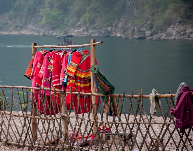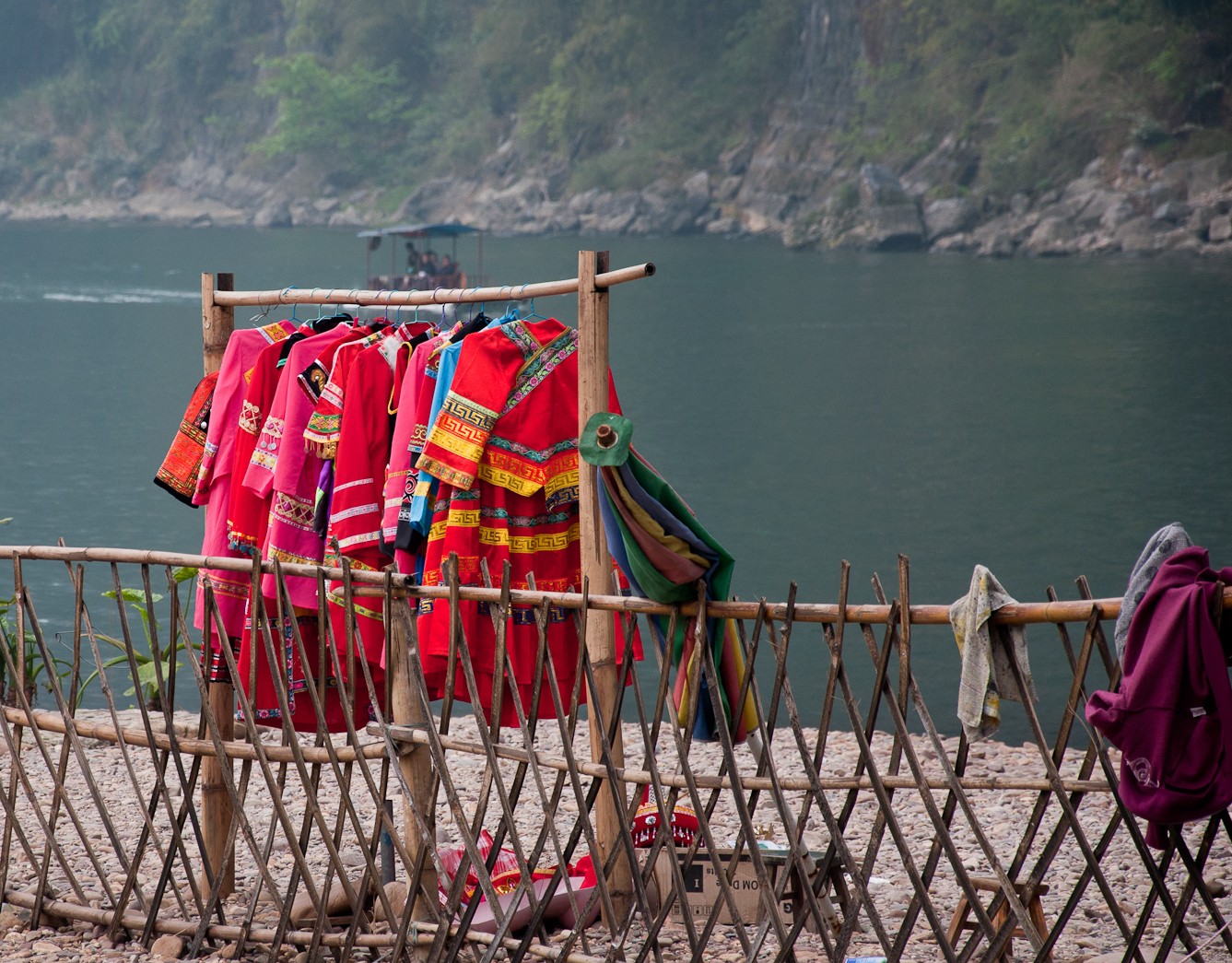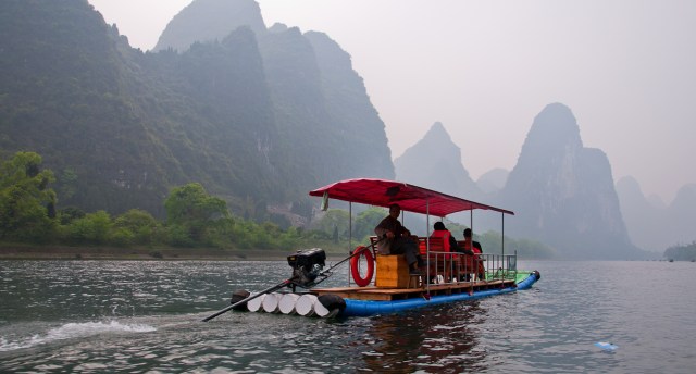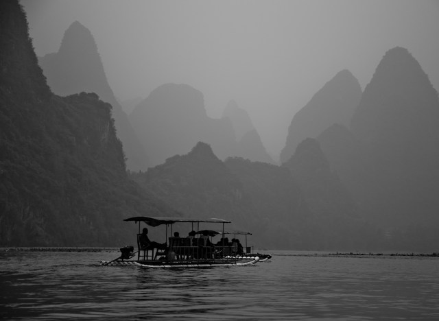 “A boat trip on the peaceful Li River is the absolute high point of any visit to Guilin. A cruise from Guilin to Yangshuo, visitors will experience the winding and twisting Li River, goes past the many bizarre mountains whose shapes have inspired and fired the Chinese imagination, the Elephant Trunk Mountain, Old Man Mountain, Pagoda Mountain and Hole Mountain. Cormorant fishermen in narrow bamboo boats, bathing children, water buffaloes, small settlement and women doing their washing on the banks of the river can be seen along the way. Yangshuo, at the end of the boat journey is today a developed village that thrives mainly on tourism and seems to have nothing but tourist shops. “