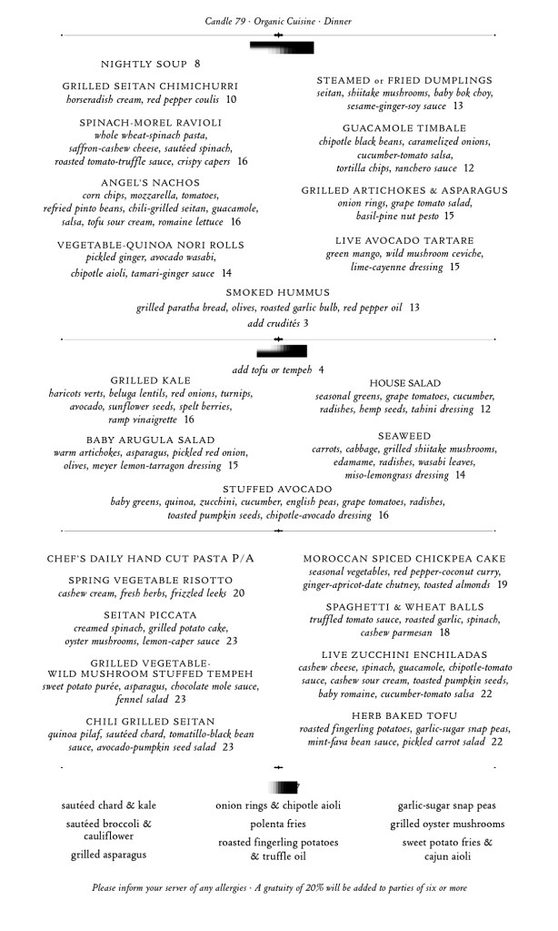 - try some really fine vegan dining, in this case at Candle 79