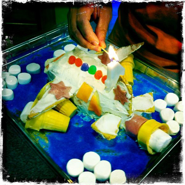 Dexter will be four in about a week, and today was his party. Parents, grandparents, family all gathered to celebrate the event. Peter and Karen were gracious hosts, and their swimming pool provided respite from the nearly 100-degree heat. The usual highlights included the birthday boy’s 4th scrapbook, Mom’s most creative cake (in the form of an airplane), Dad’s expertise in lighting the candle, the grandparents doing their vegan thing with excellent grilled portobellos (marinated in olive oil and balsamic vinegar) on whole wheat buns, salad, Udon buckwheat noodles with a peanut sauce, all washed down with a lovely Crozes Hermitage from Domaine Belle — and of course, an exciting array of presents for both boys. Here are a few modest photo highlights from the event, soon to be eclipsed by Momma’s album which will contain her best 300 photos of the affair.