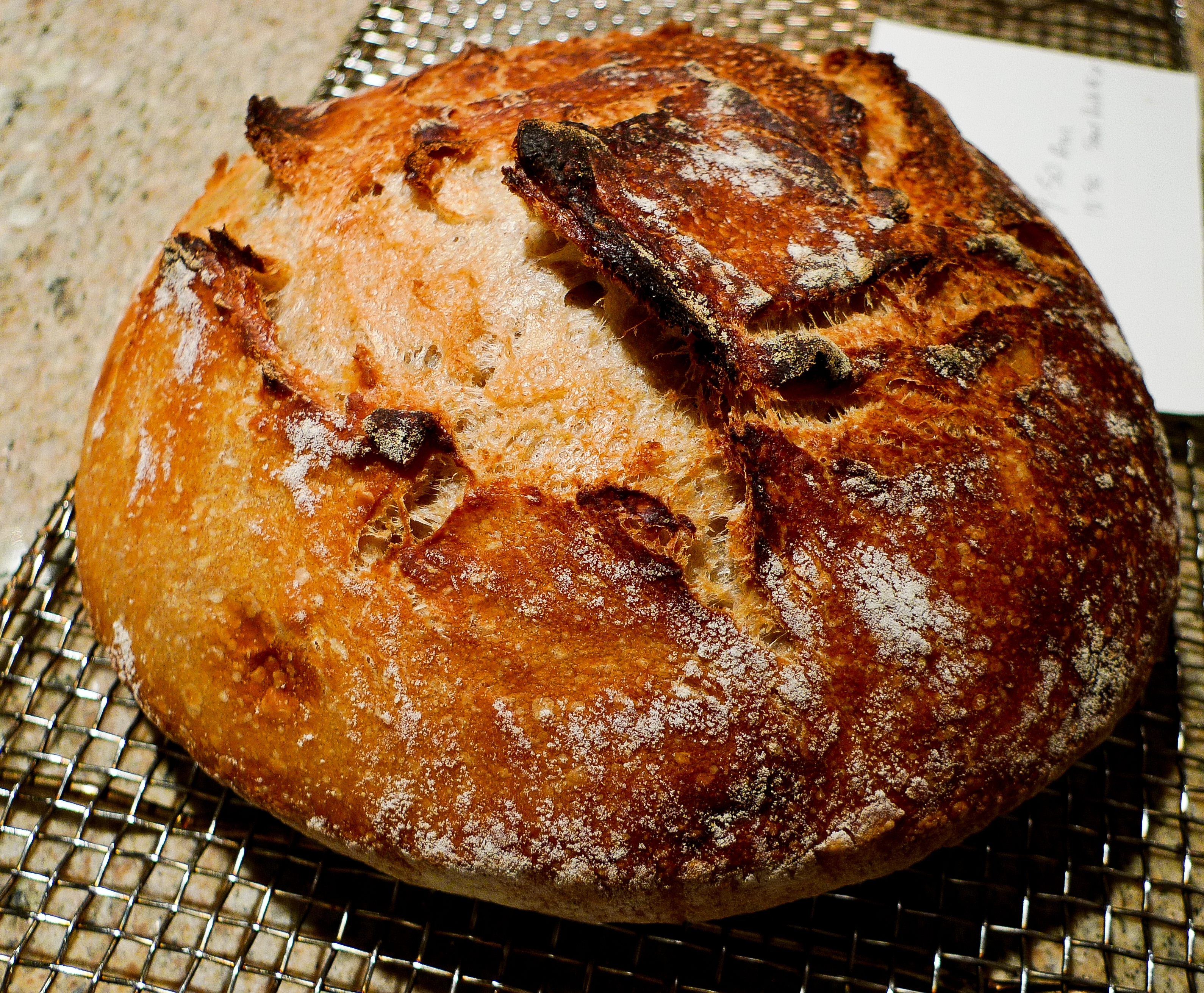 One such person is Chad Robertson, co-owner of Tartine Bakery in San Francisco and author of the outstanding book, Tartine Bread. For the past two months I’ve been reading the basic bread techniques in this book, and learning how to do it. The most exciting thing is that the bread is made with only flour, water and salt. No yeast is added. You make a starter with flour and water; feed it fresh flour and water daily, to train the natural yeasts and bacteria around to do their thing reliably; then make a leaven, and then bake the bread.