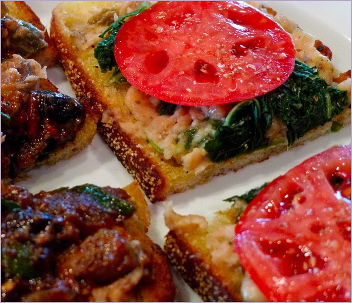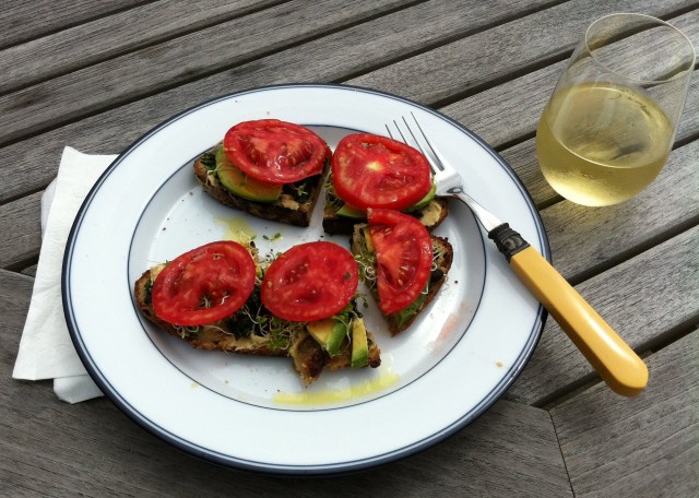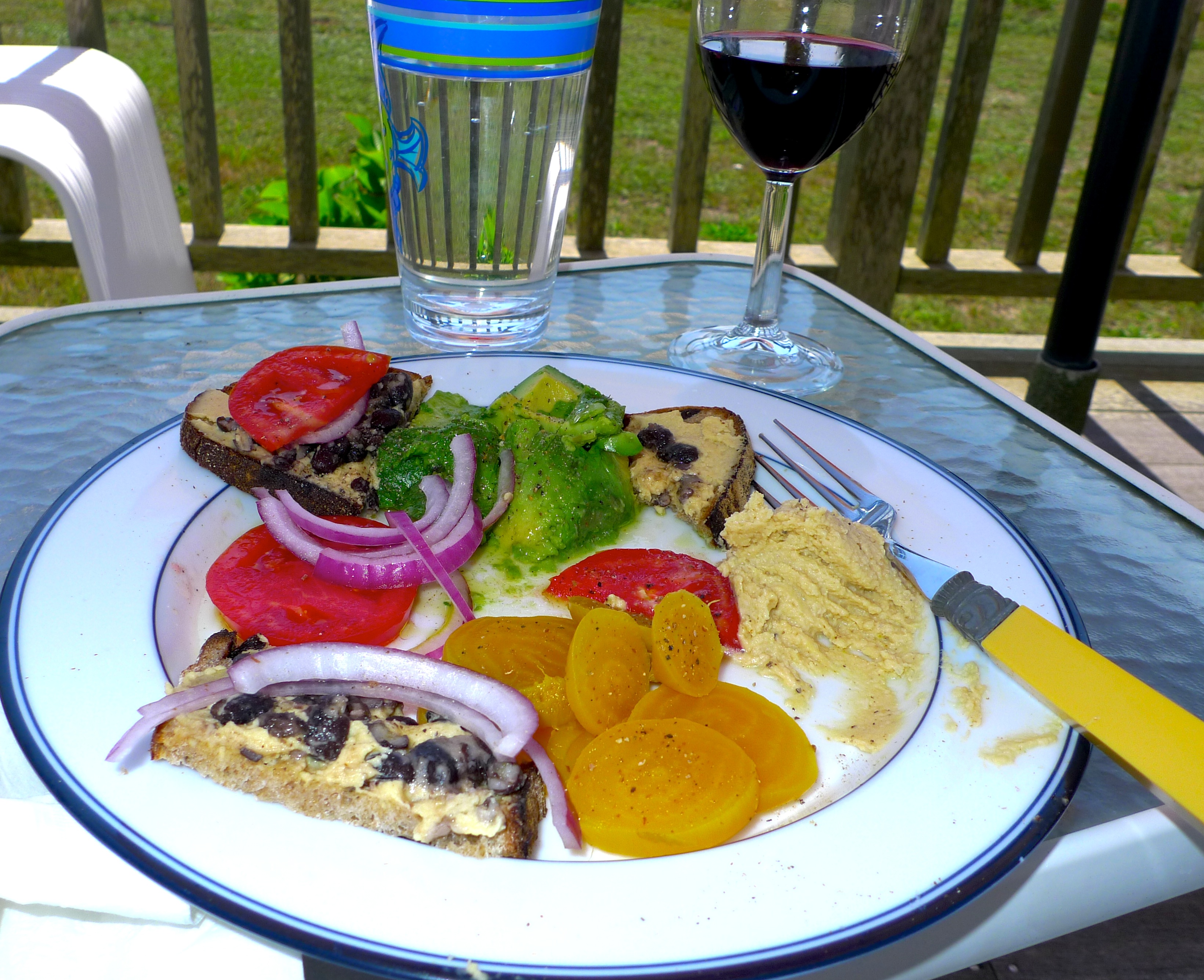 I’ve been rediscovering those treats, now that I have our own country bread and so many great vegetable/legume/condiment choices available as a vegan. While I occasionally miss a succulent sardine fillet, bursting with omega-3 oils, I am delighted with some of the combinations we are having this summer. Here are some examples.