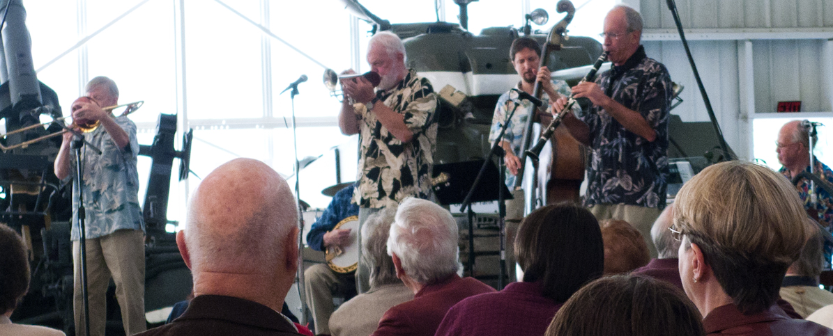 This afternoon we went to the Collings Foundation site in Stow to celebrate the 40th anniversary of the Black Eagles Jazz Band, with a concert at the foundation’s aviation and antique car museum. The full set of photos is in this album, and the highlights are below.