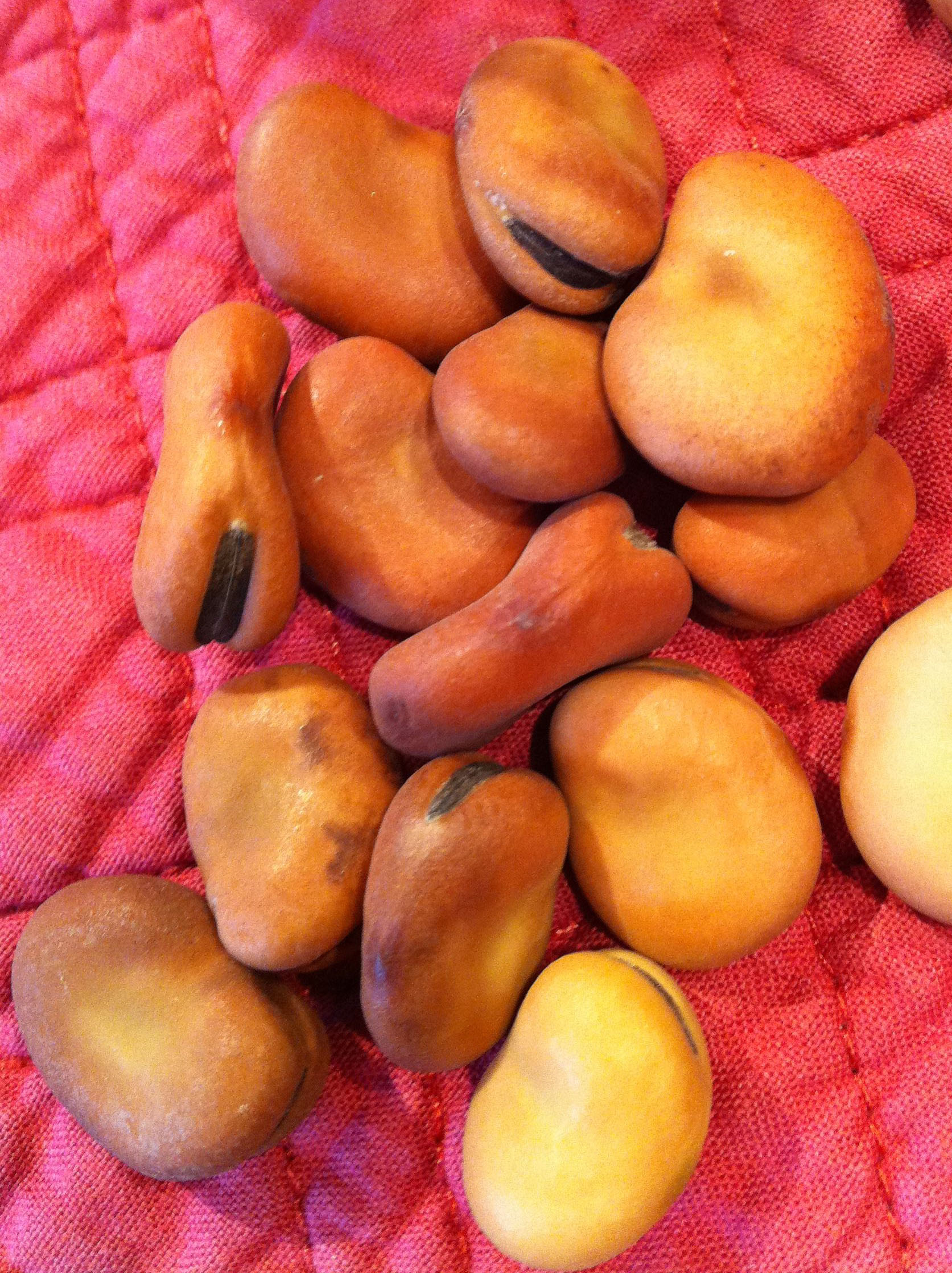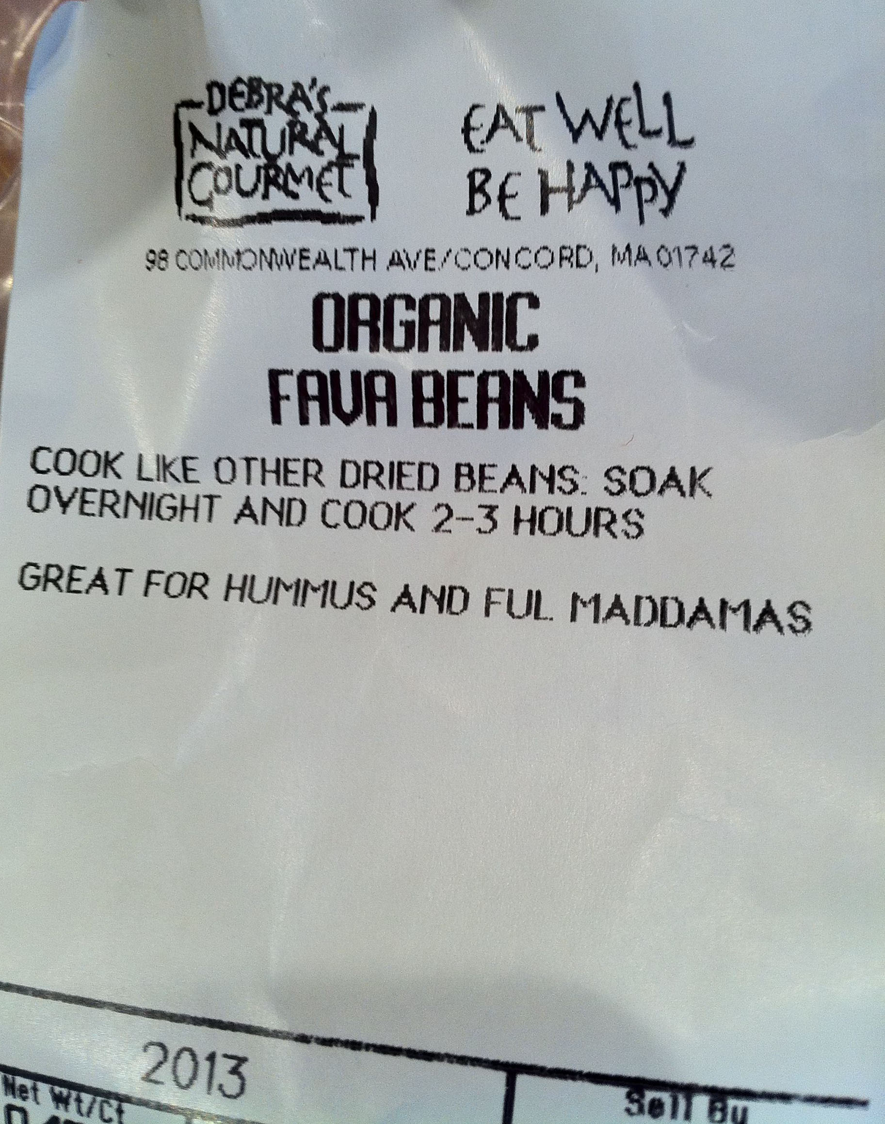 Fortunately, cooking and eating have continued unabated during my hiatus, and I return with a few notes about food highlights this weekend. Yesterday was a good day for vegan choices. Lunch borrowed a page from Chad Robertson, who likes his bread slices pan-fried. I did so with three slices of my latest Tartine bread (70/30 white to whole wheat ratio), browned nicely in olive oil. On these I spread a thick layer of coarse puree of organic, dried fava beans, which I had prepared the day before. (This was the first time I had ever cooked dried fava beans. They were hard, deep tan, nuggets that looked like giant corn kernals, displaced molars or Chiclets — but after soaking overnight and simmering with garlic, onion and bay leaf for 90 minutes, they each yielded small amounts of creamy beanness when squeezed between two fingers.)