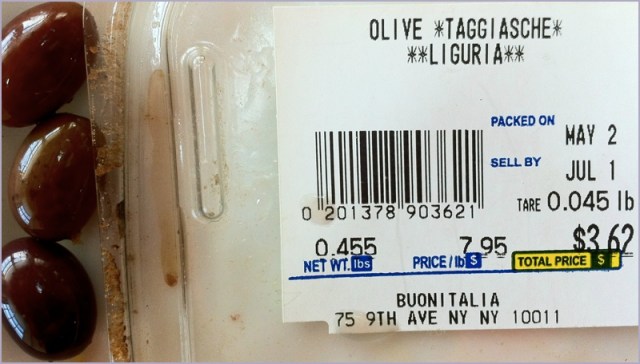 Two more essential ingredients completed the source material: Taggiasche olives from Liguria, and organic cannelini from Italy (both by way of BuonItalia in NY). Yesterday I made the bean puree (just cooked cannelini, olive oil, sea salt and garlic), after having soaked the beans for 24 hours earlier) — all part of getting things I want to eat in proper position for future consumption.