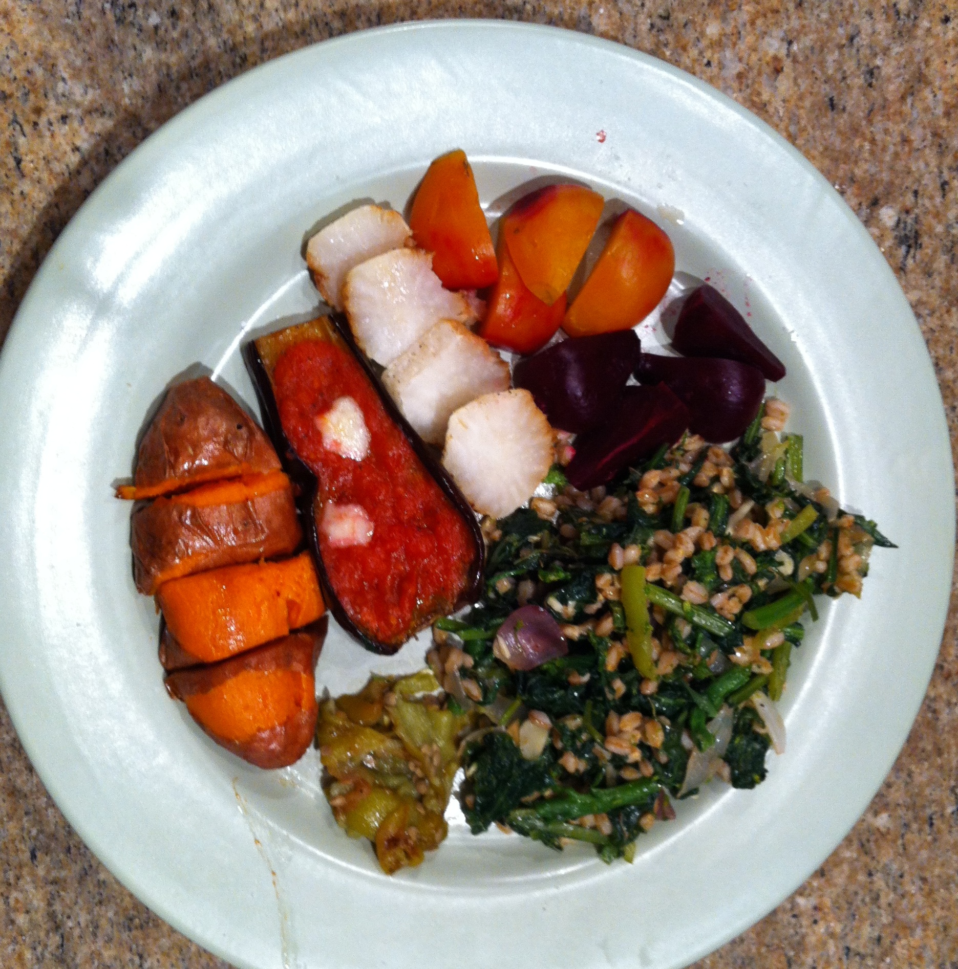 That same week also produced a simple plate of the best vegetables — some pan-roasted, others in the oven: