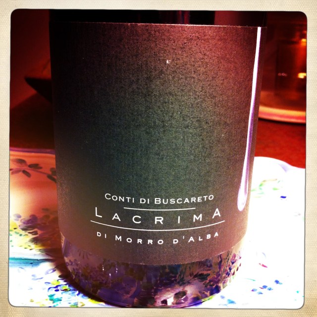 Lest you be concerned that I have given up wine, I am providing a photo of the 2007 Lacrima di Morro d’Alba which accompanied this meal and the next.