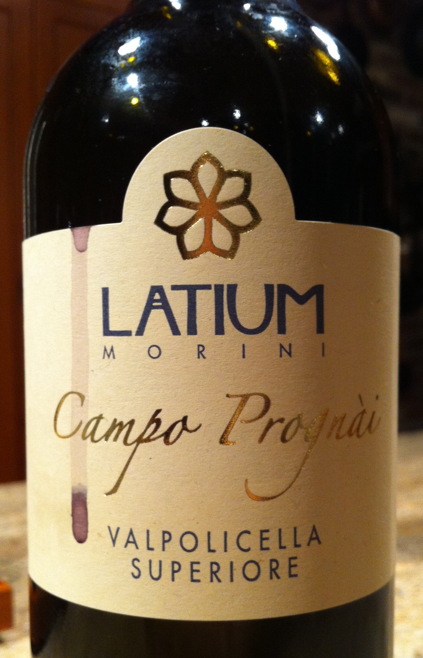 It will probably not surprise you that I selected a red wine to accompany this meal. It was a 2009 Valpolicella Superiore, Latium Morini, titled Campo Prognai. It was fine, but almost too rich and full-bodied for the dish. A slightly lighter one — I imagine not a Superiore — would be better next time.