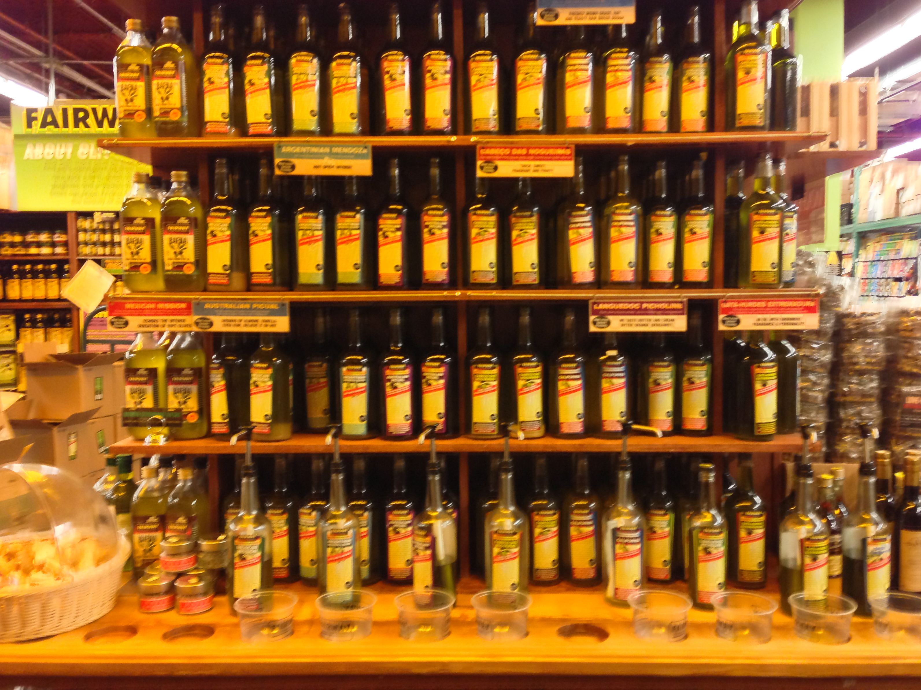 Here is the olive oil display and the selection of of their bottles to taste.