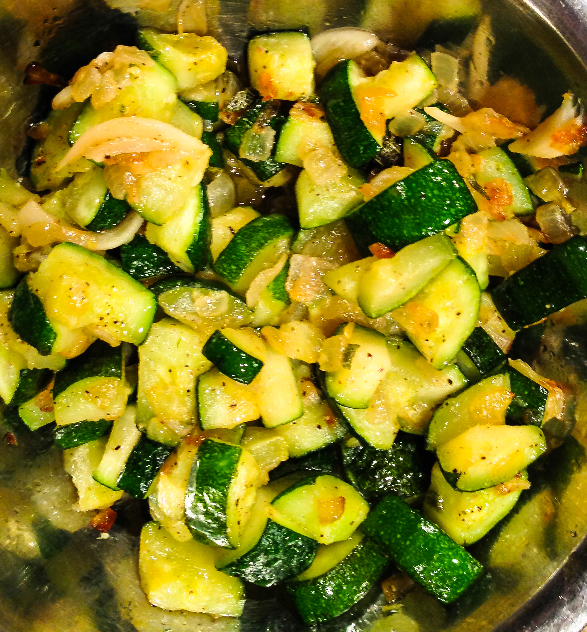 I had purchased some lovely organic zucchini at Trader Joe’s yesterday, which quickly brought to mind the Zucchini in Umido recipe of which I’ve written before (that’s the Venetian part of this meal) , so I now had my plan: