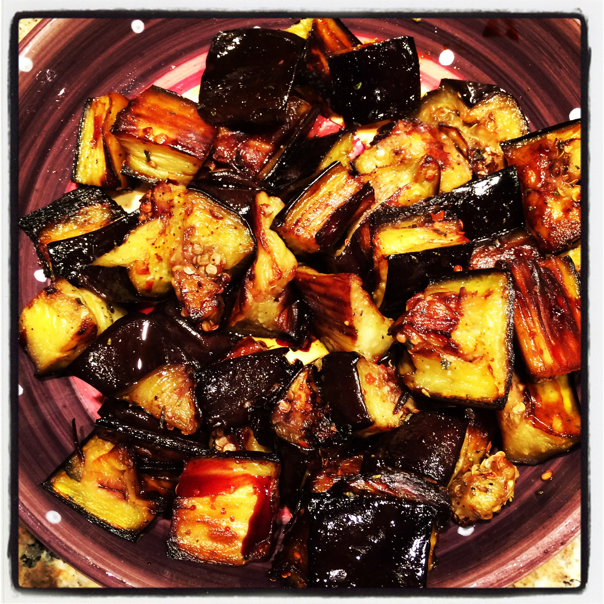 • roasted eggplant with herbs and a bit of leftover pomegranate raspberry sauce