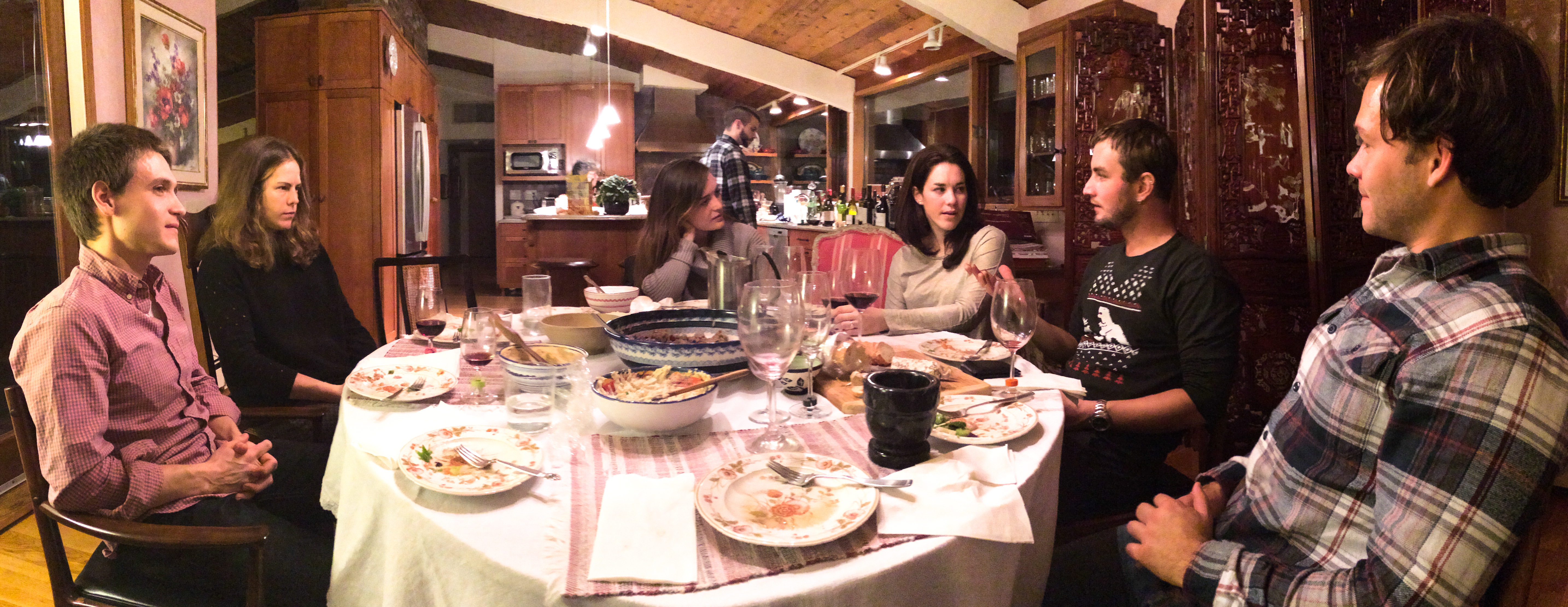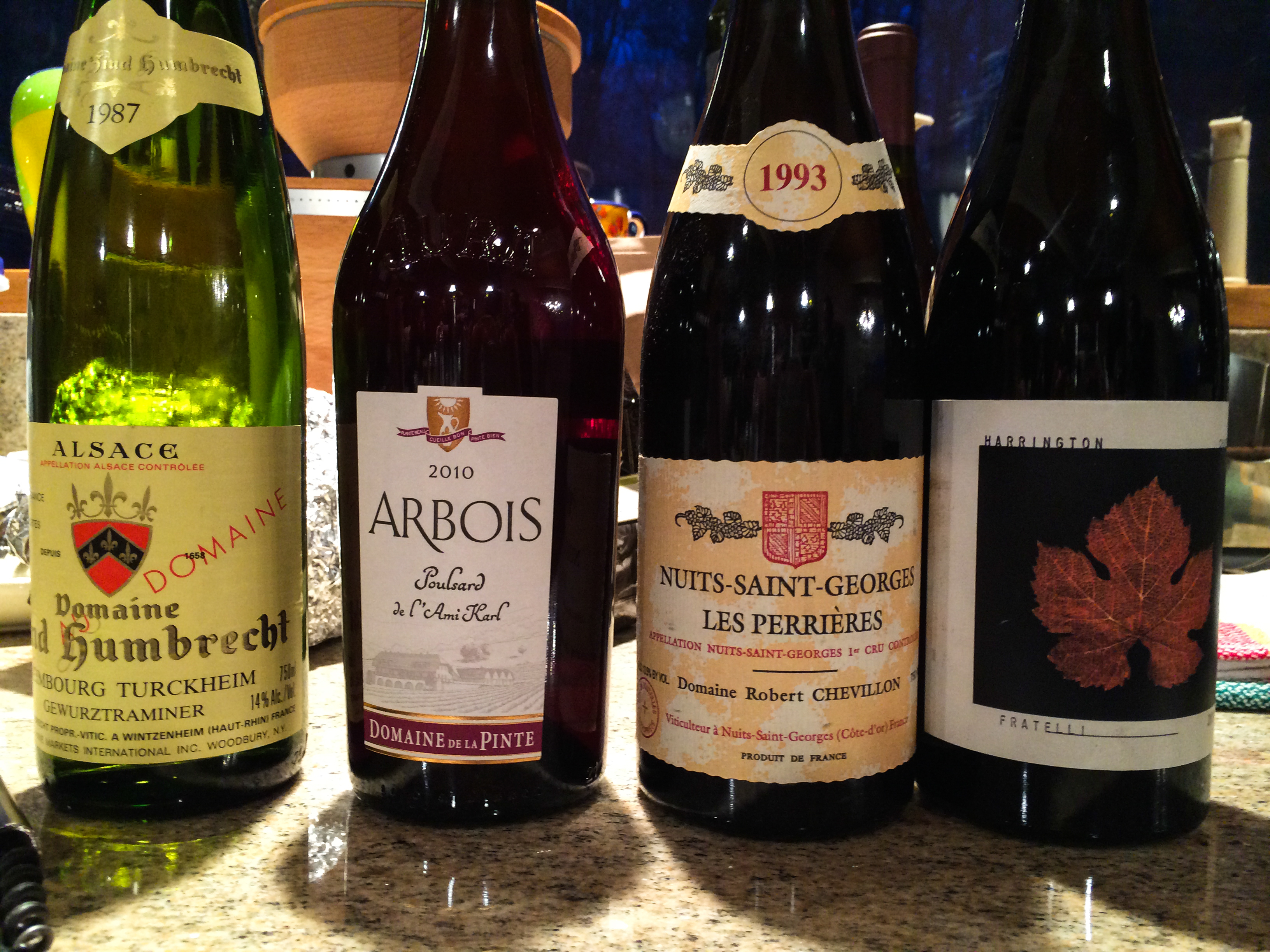 Aaron’s here for a week, and last night we celebrated with some of his very good friends. Having established a tradition of sharing good food and wine with this group, it was a perfect time to do it again.