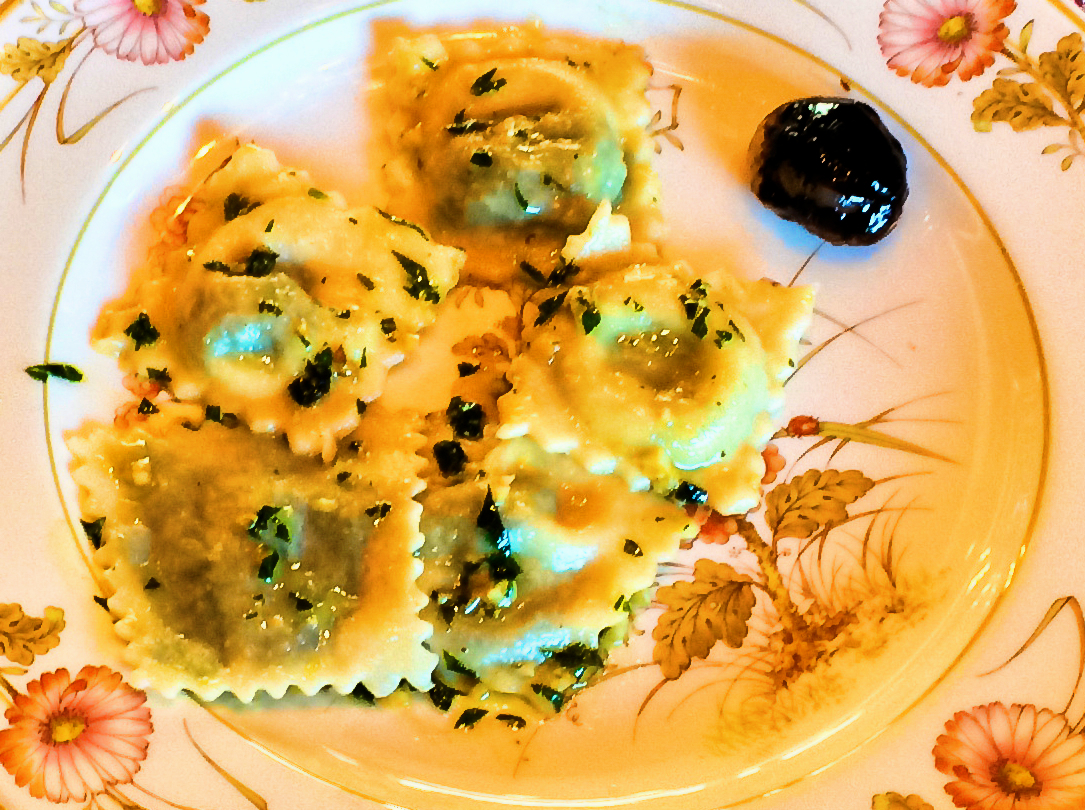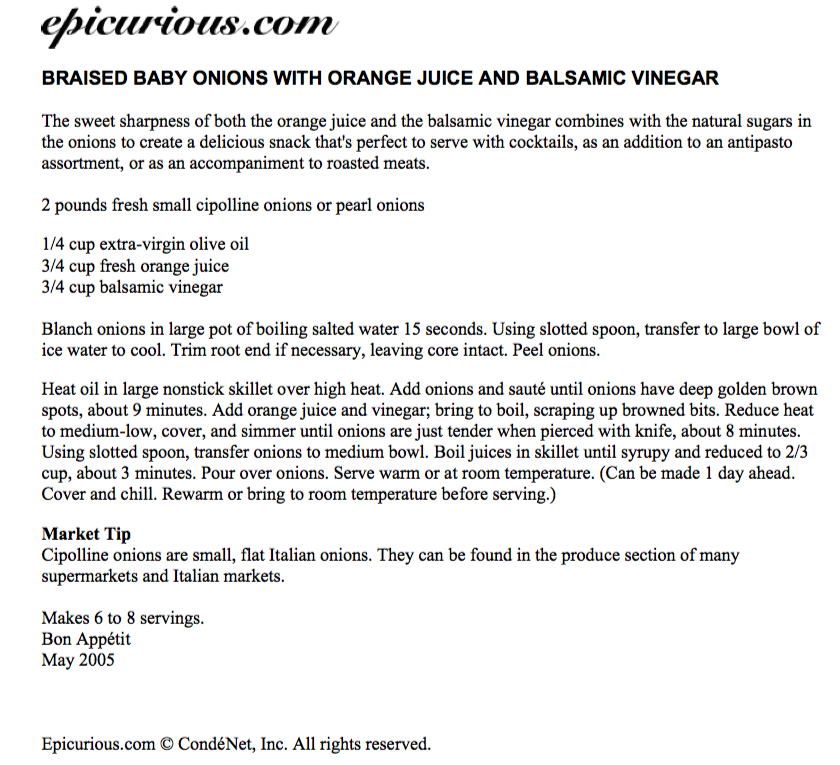 They were very meticulous and engaged in the process. We took a half hour break while I straightened the kitchen a little, and then I put a pot of water on the stove and cooked the ravioli. While that was heating up, I chopped three cloves of garlic and some parsley, and sautéed them in olive oil, salt and pepper, for the sauce. While we were doing the other cooking, I also decided to make a recipe for Braised Cippolini with an Orange Juice-Balsamic Glaze, using a small amount of those onions I had bought the week before.