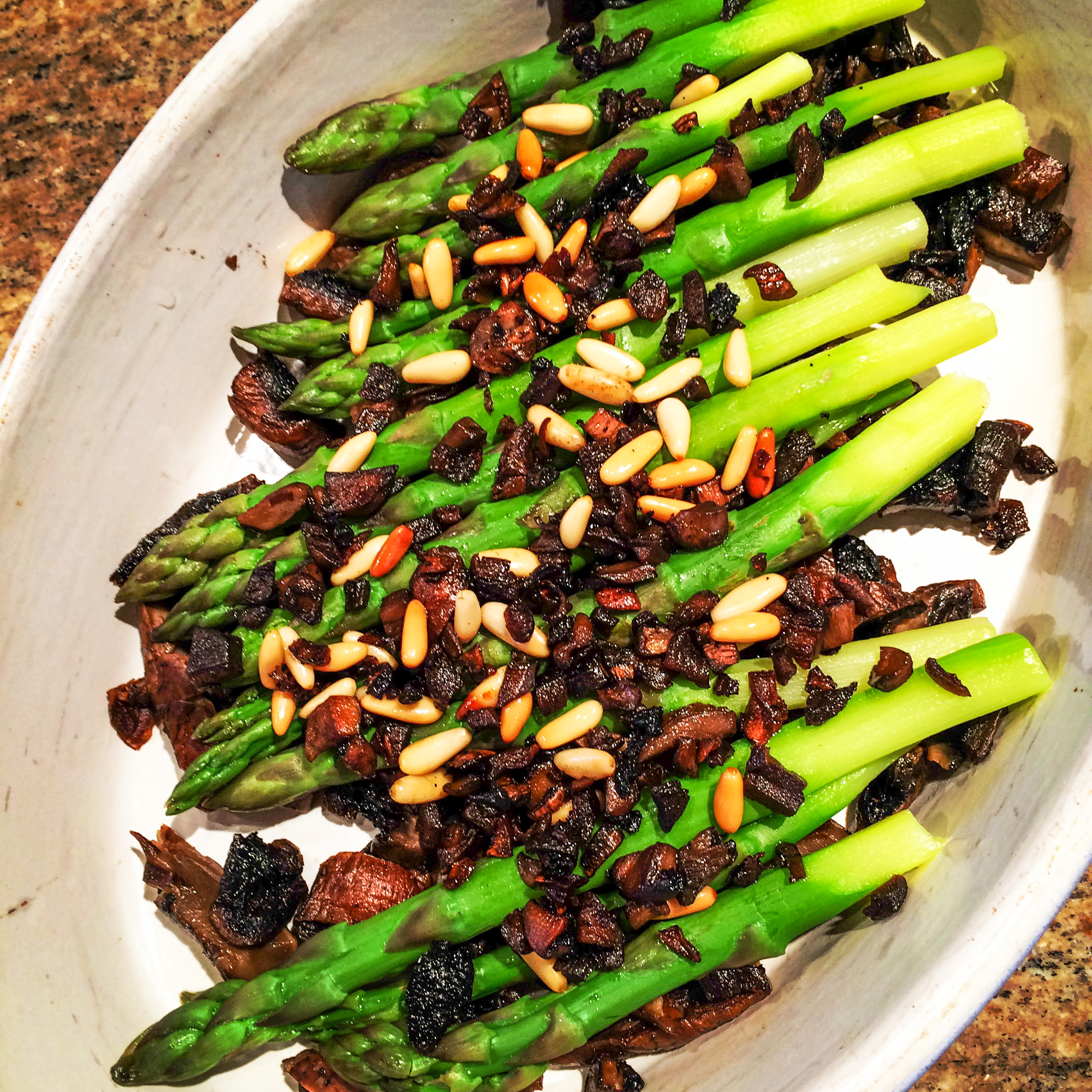 Asparagus with Pine Nuts and Roasted Wild Mushrooms
