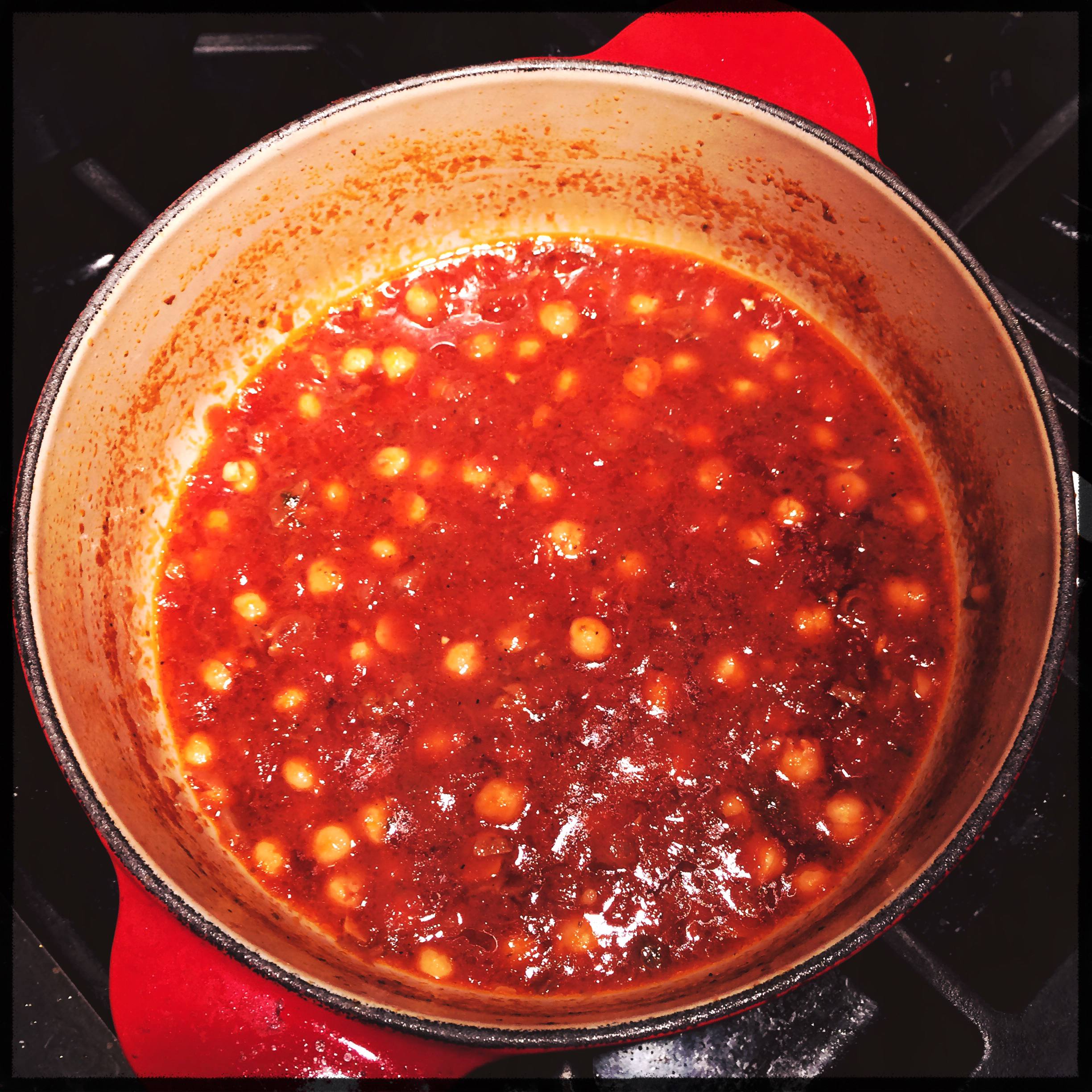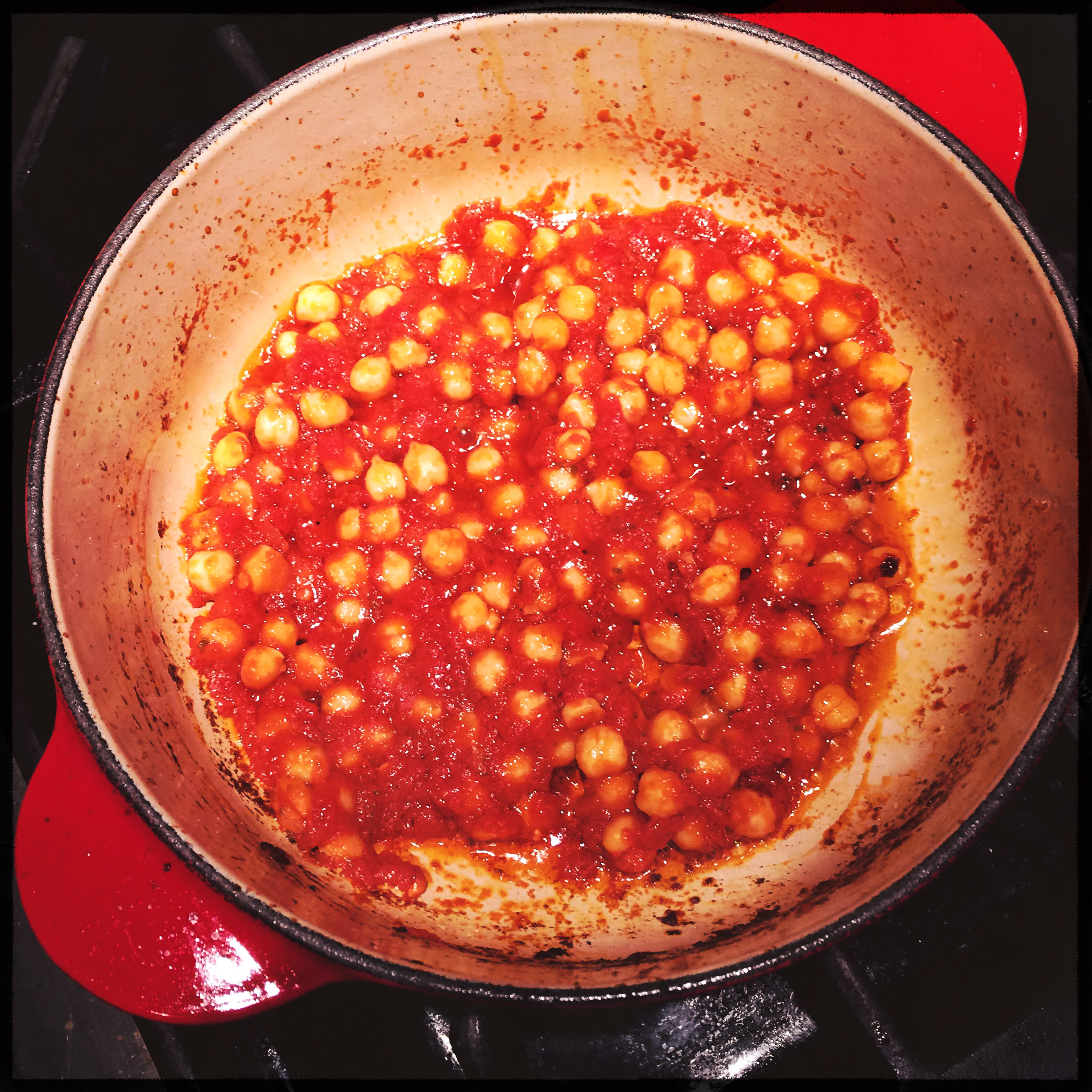 - add cooked chickpeas and heat with tomatoes for 5-7 minutes