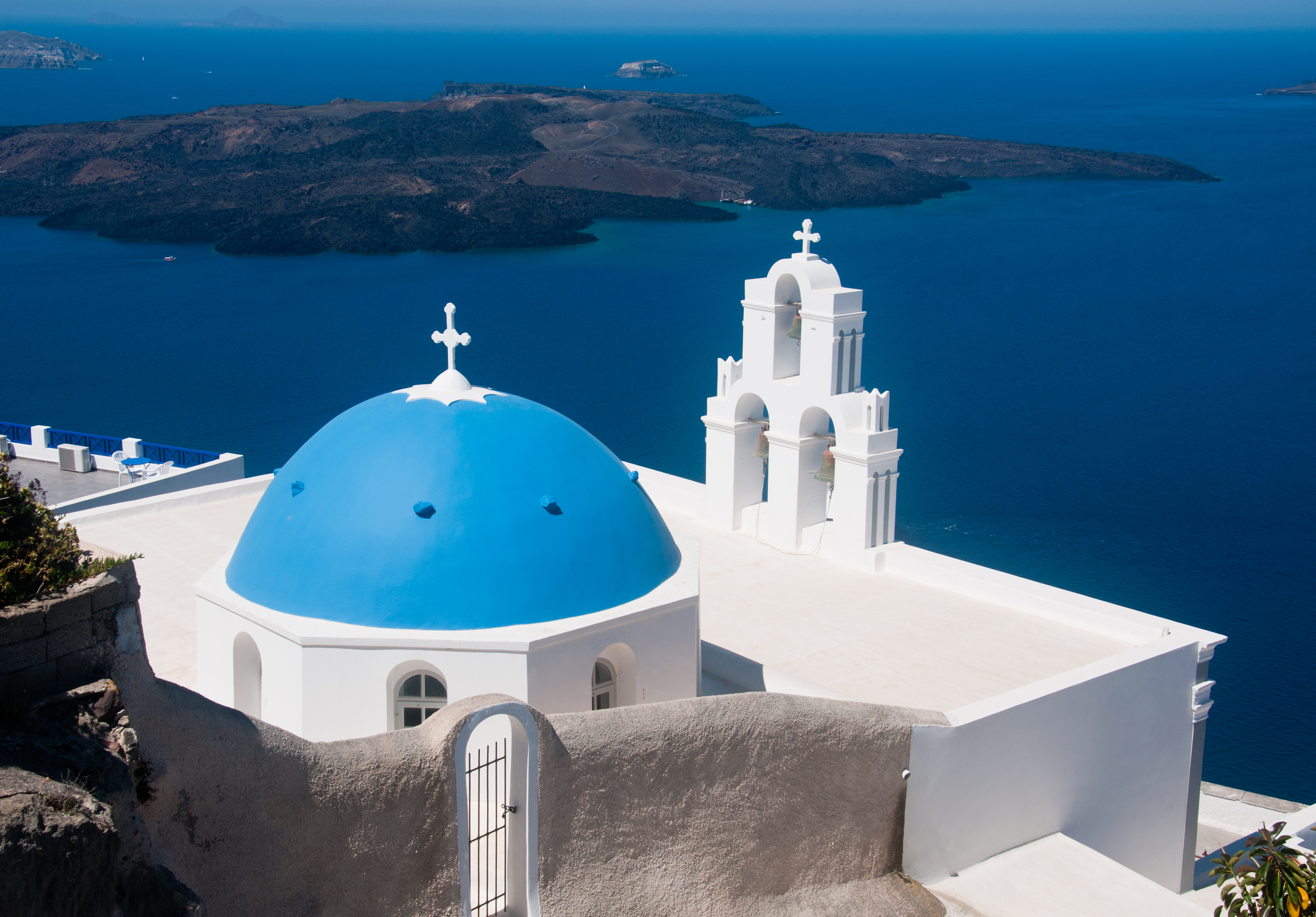 As described in Wikipedia, “the island is the site of one of the largest volcanic eruptions in recorded history, which occurred some 3600 years ago, and it left a large caldera surrounded by volcanic ash deposits hundreds of meters deep. The eruption may have led indirectly to the collapse of the Minoan civilization on the island of Crete, 110 km (68 mi) to the south, through a gigantic tsunami. Another popular theory holds that the Thera eruption is the source of the legend of Atlantis.”