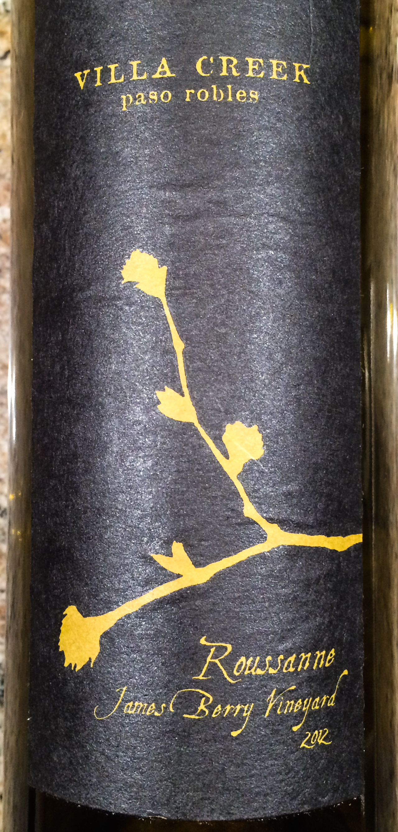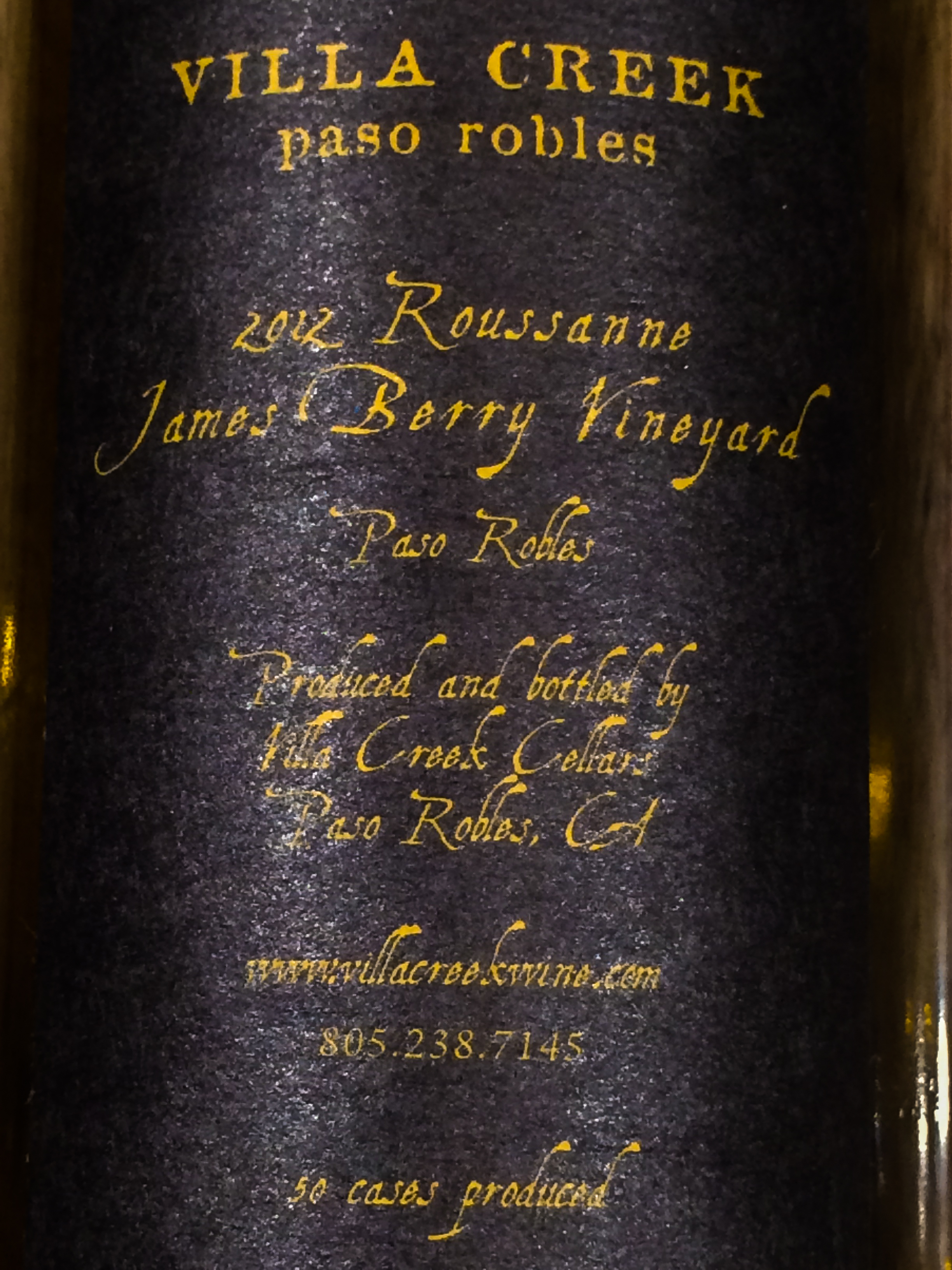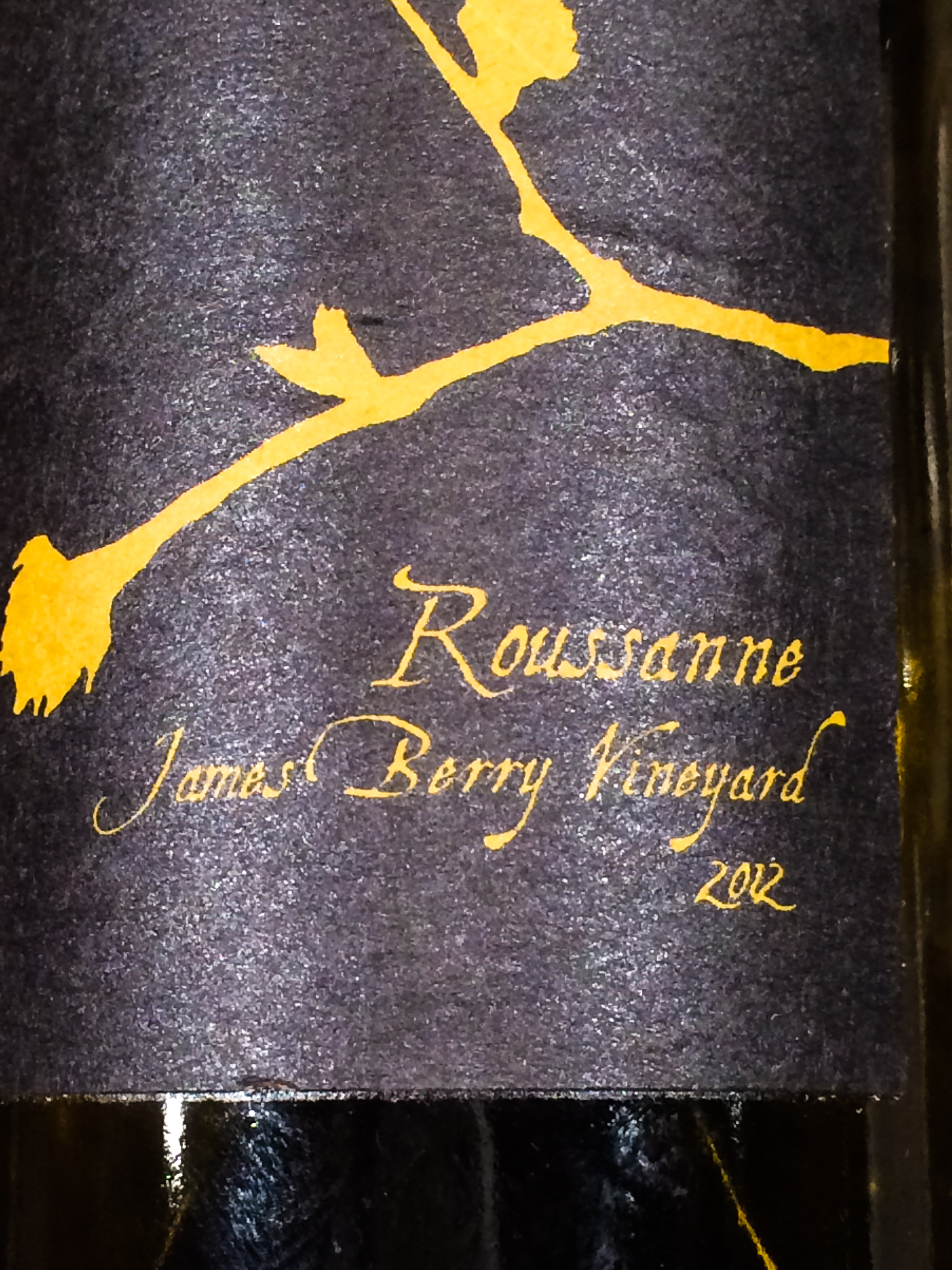 I did not take photos of all the wines, but here were two. There was also a 2002 Italian white wine, uncovered in the cellar reorganization, but unfortunately that had gone by, so we poured it out. The Villa Creek Rousanne was marvelous, as was the the 2005 Sancerre Rouge from Lucien Crochet.