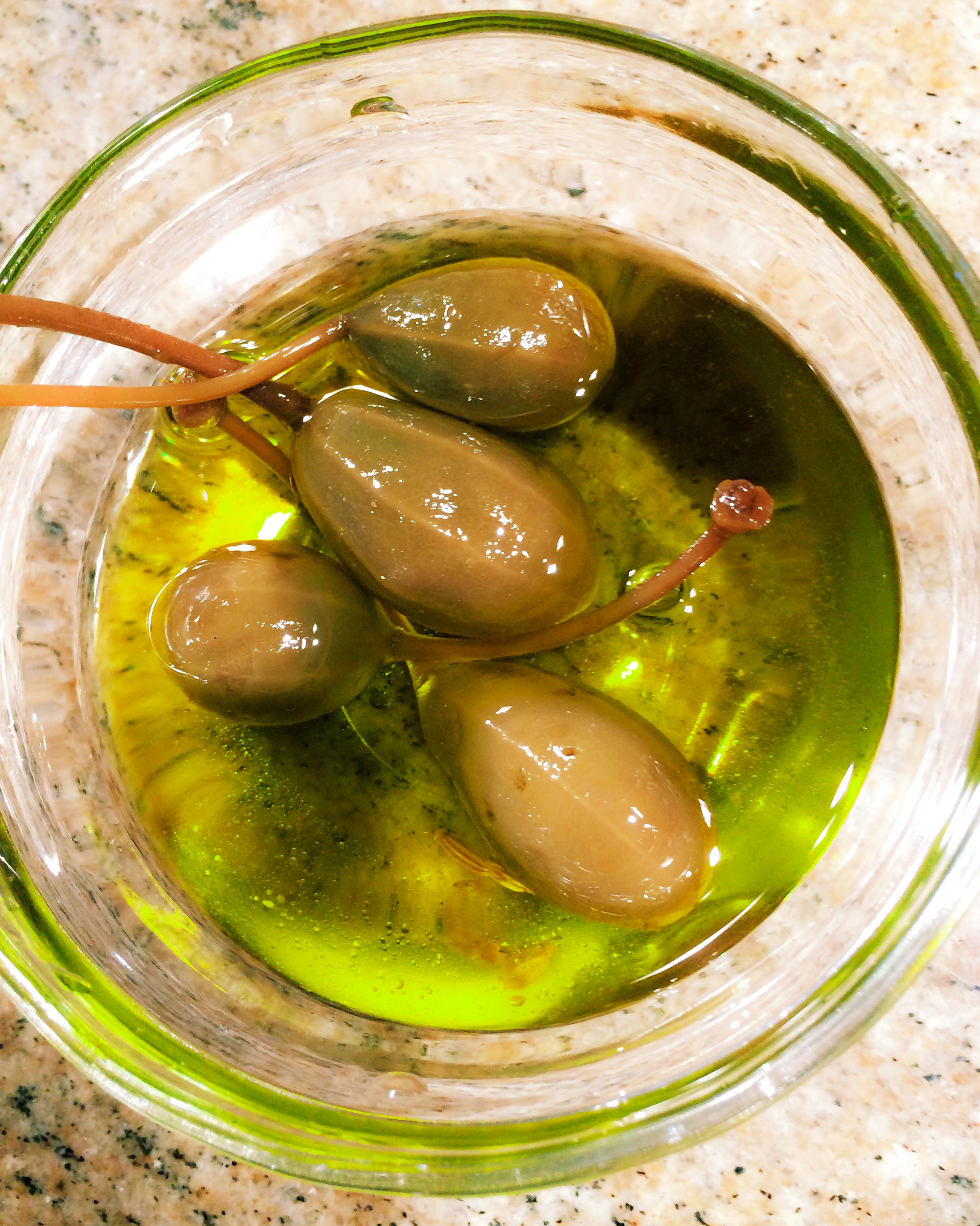 - Spanish caper berries, marinated in olive oil with rosemary and fennel seed
