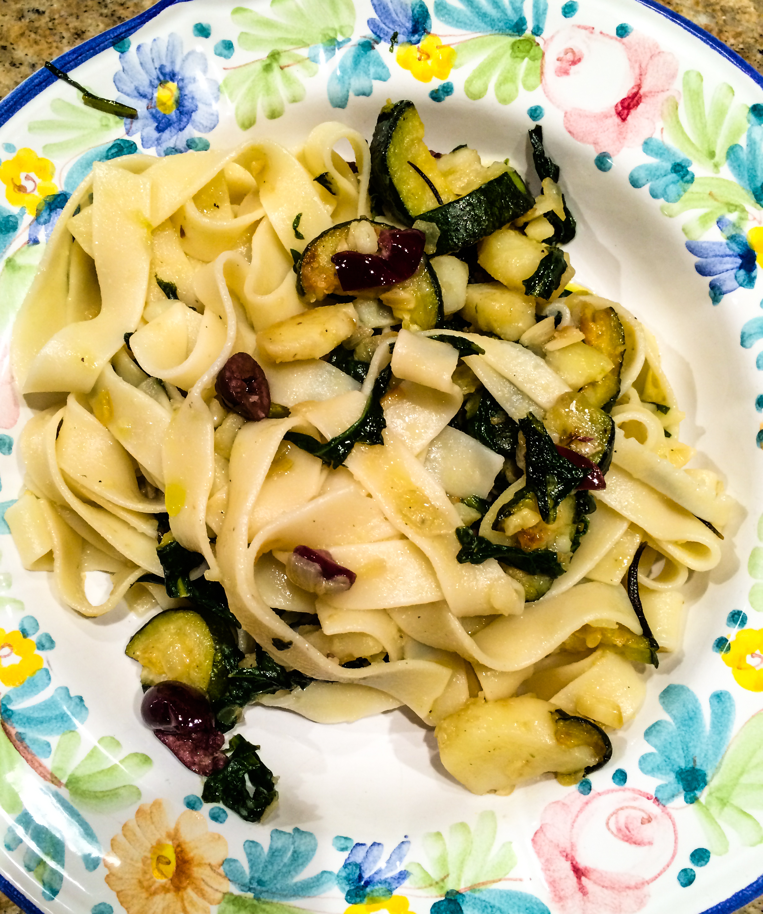 The final invention for the week was tonight’s pasta for dinner. I was in a Ligurian sort of mood, and Barbara was off at the grandkids’ house for a couple of hours , so I was free to play around. Lots of pans, but a relatively simple dish: