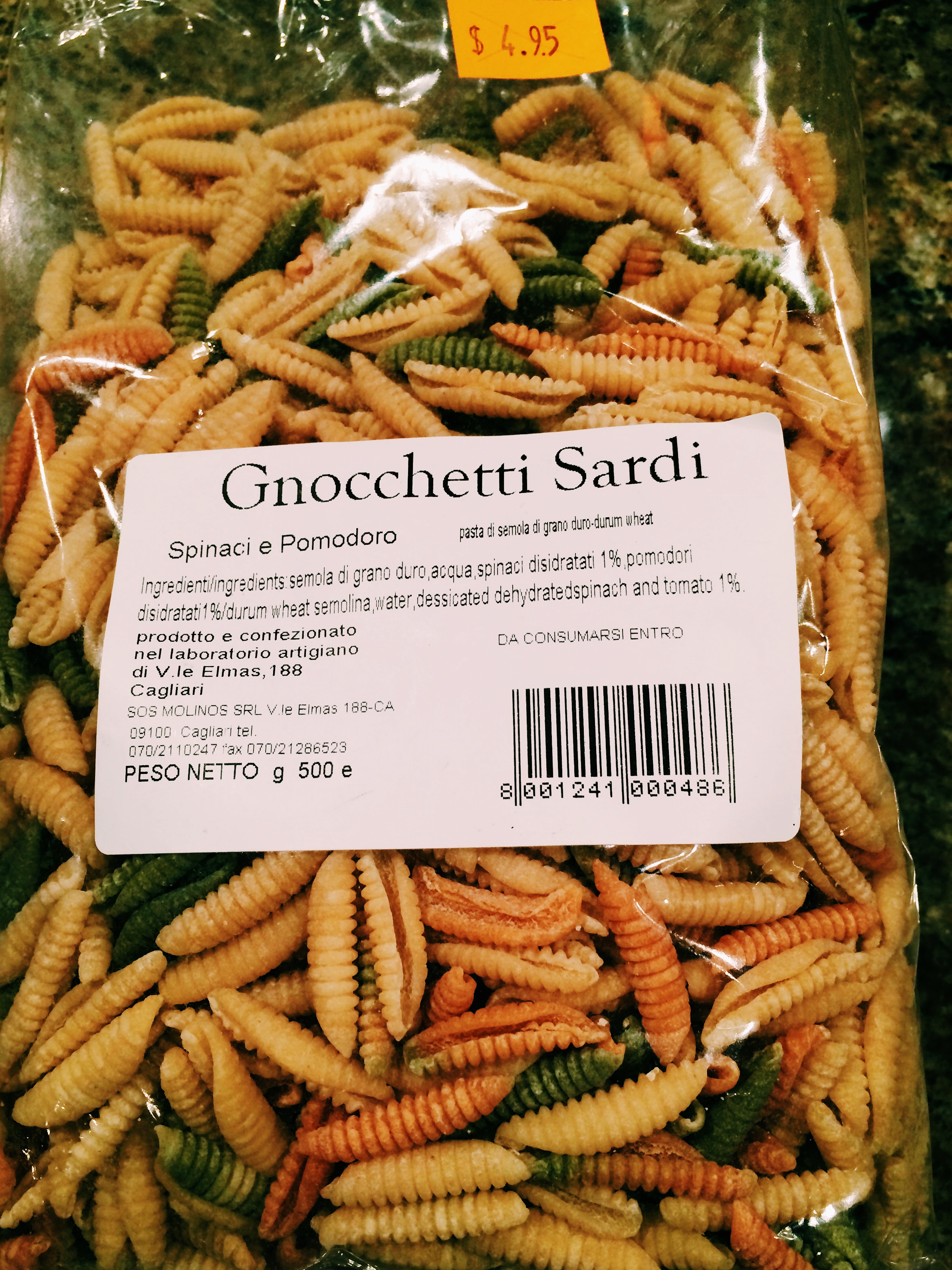 One of my unique food finds in NY was a package of Gnocchetti Sardi, a pasta from Sardinia. I found it at BuonItalia and purchased the one which included the spinach and tomato pasta doughs.