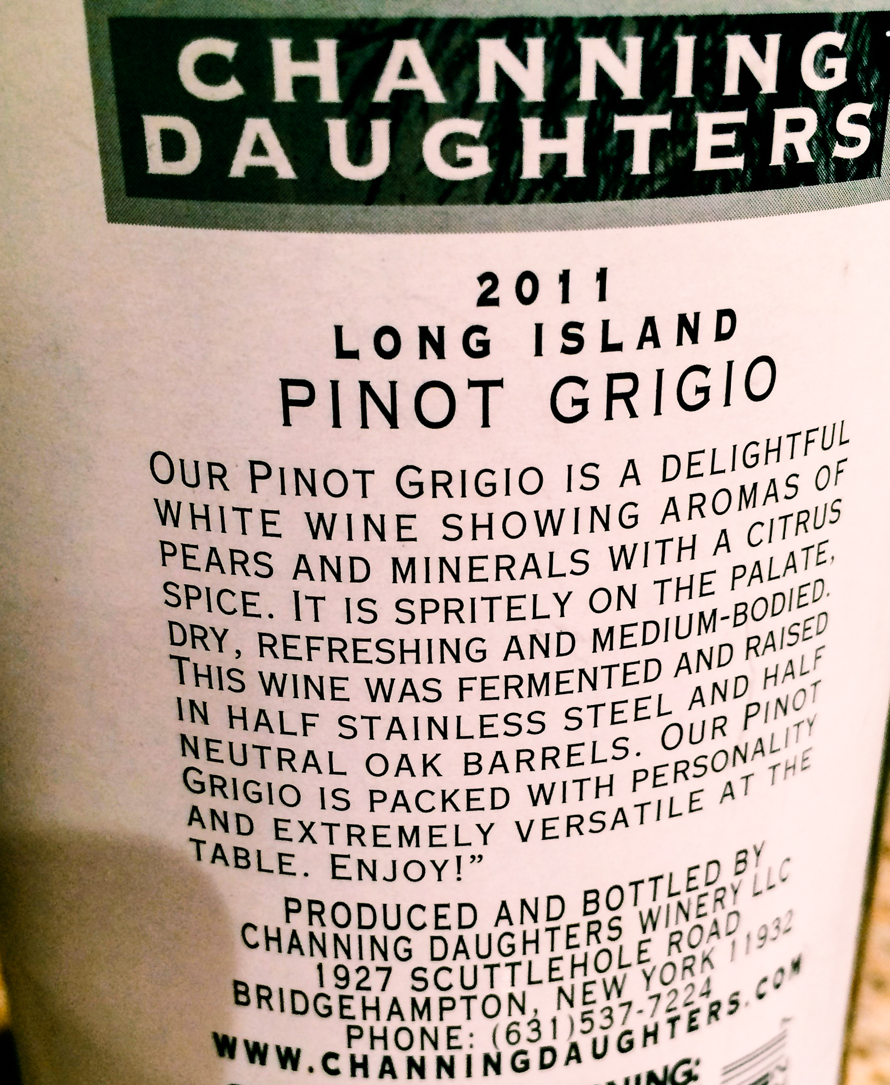 She also made a salad with lettuce, endive, and some micro greens, dressed in a mustardy vinaigrette. And I opened a bottle of Channing Daughters Long Island Pinot Grigio, another find from Social Wines and a perfect match for the occasion. Simplicity at its finest!