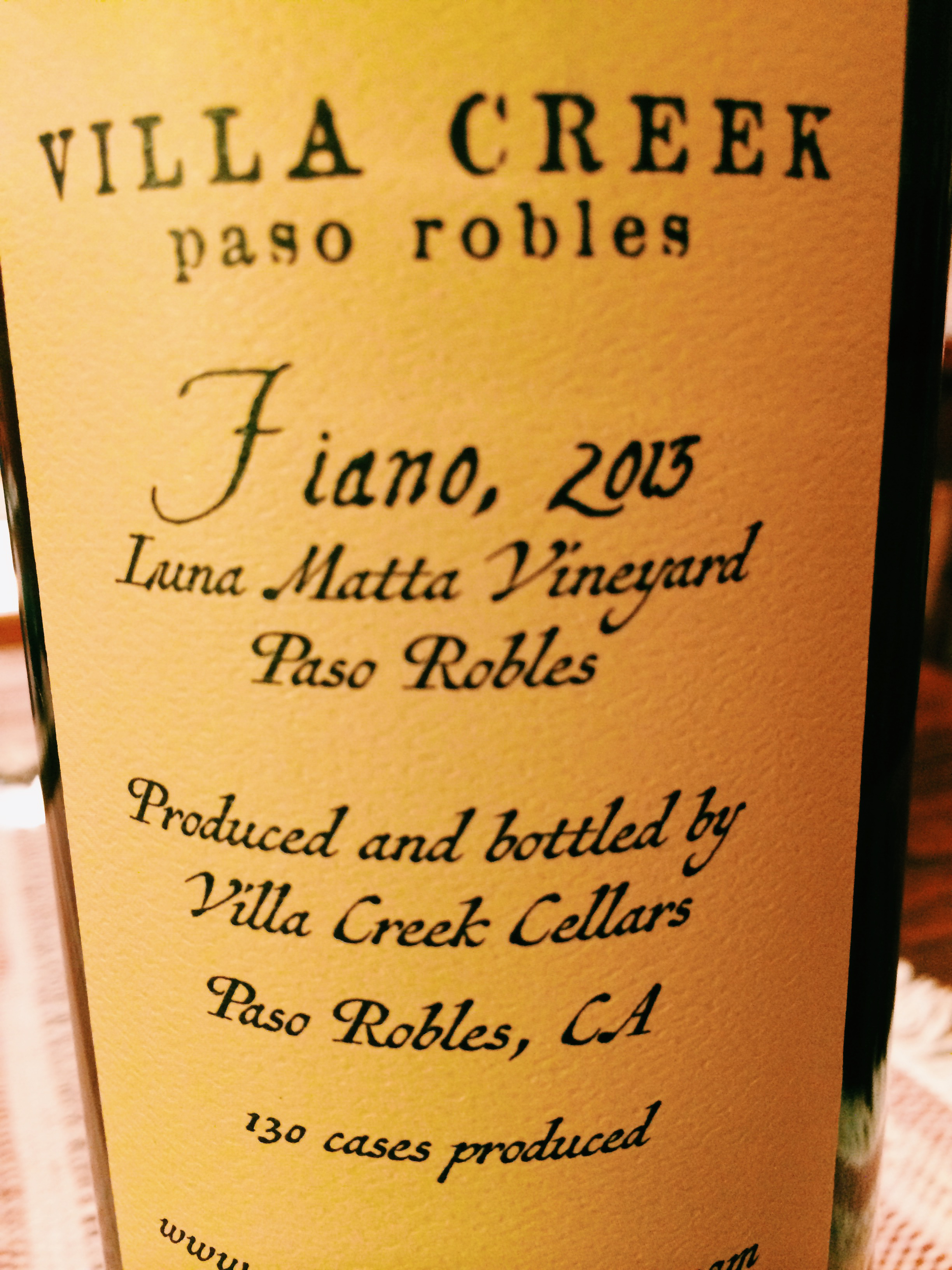 It came out remarkably good, and it matched beautifully with a 2013 Fiano from Villa Creek in Paso Robles, CA — a stunningly delicious version of a grape from Campania, of which only 130 cases were made. I am re-ordering more immediately.