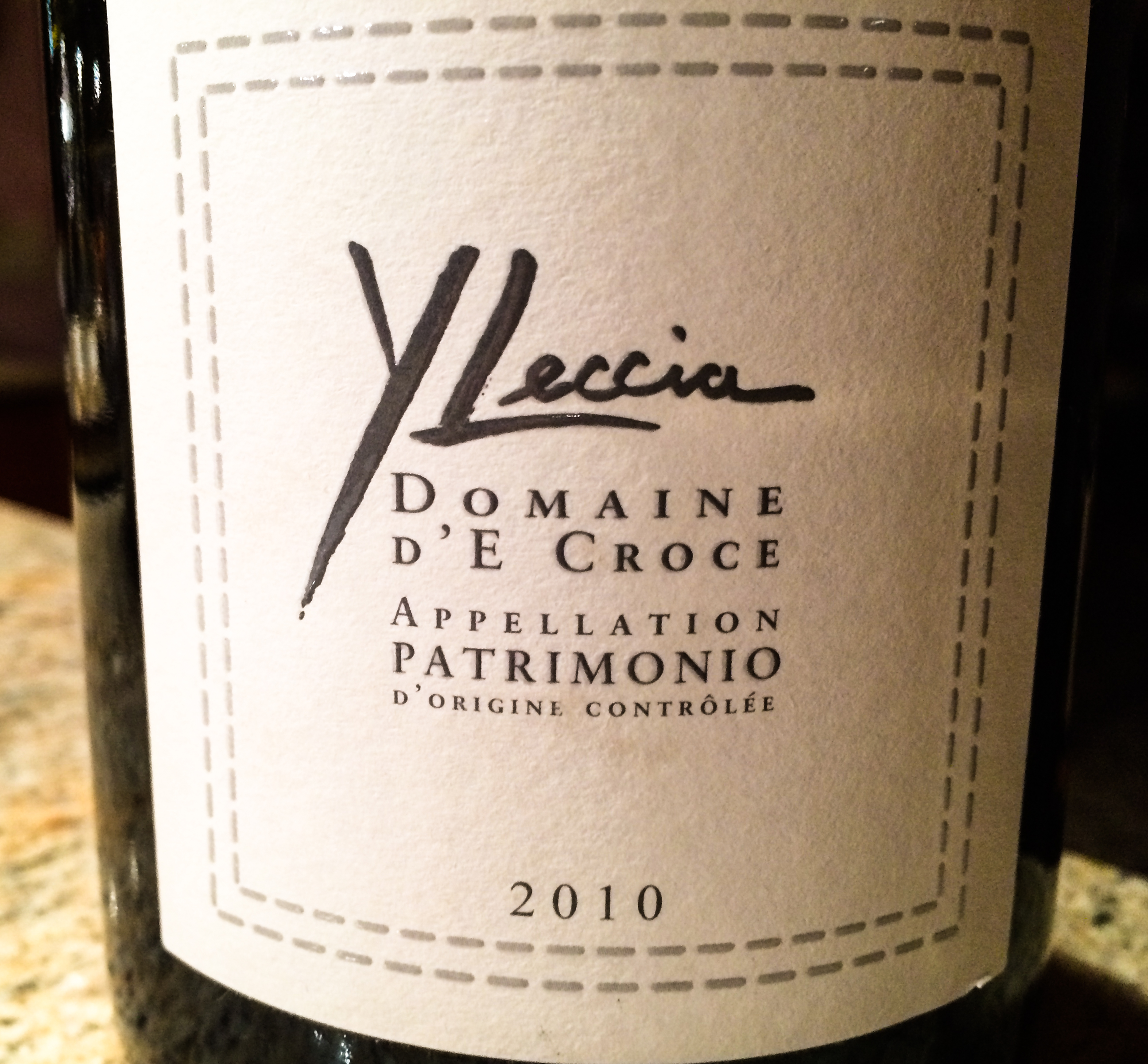 She assembled the torta in layers: mashed potatoes, spinach, potatoes, carrots, and finally potatoes and more bread crumbs on top. Then it was baked in a 350º F. oven for about 50 minutes. With the sides of the form removed, it was easy to slice into wedges and serve. The results were outrageously good, worth two servings apiece, even after I had already eaten some leftover chopped salad as a first course. For wine, I chose a Corsican wine I had bought a few years ago at Kermit Lynch’s store in Berkeley, a 2010 Patrimonio, from Yves Leccia, using 90% Niellucciu, 10% Grenache grapes. An earthy, nicely-balanced wine.