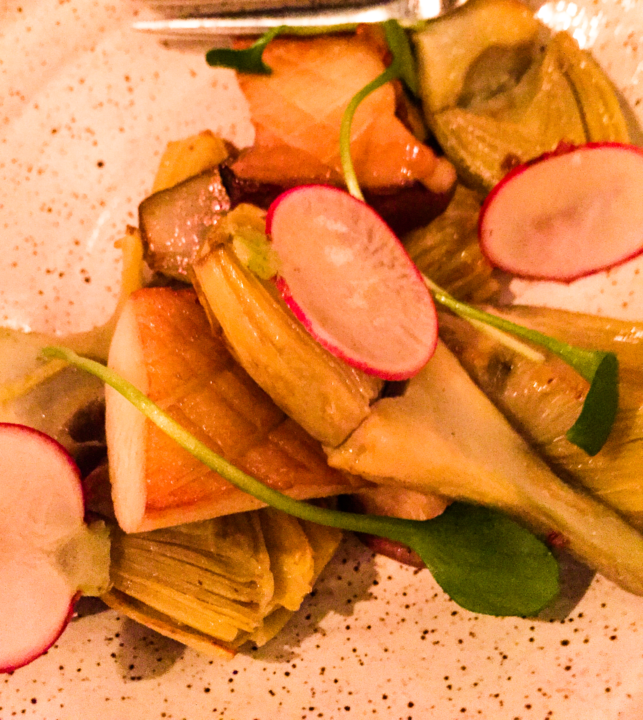 - Romanesco cauliflower, roasted beets, burdock root granita