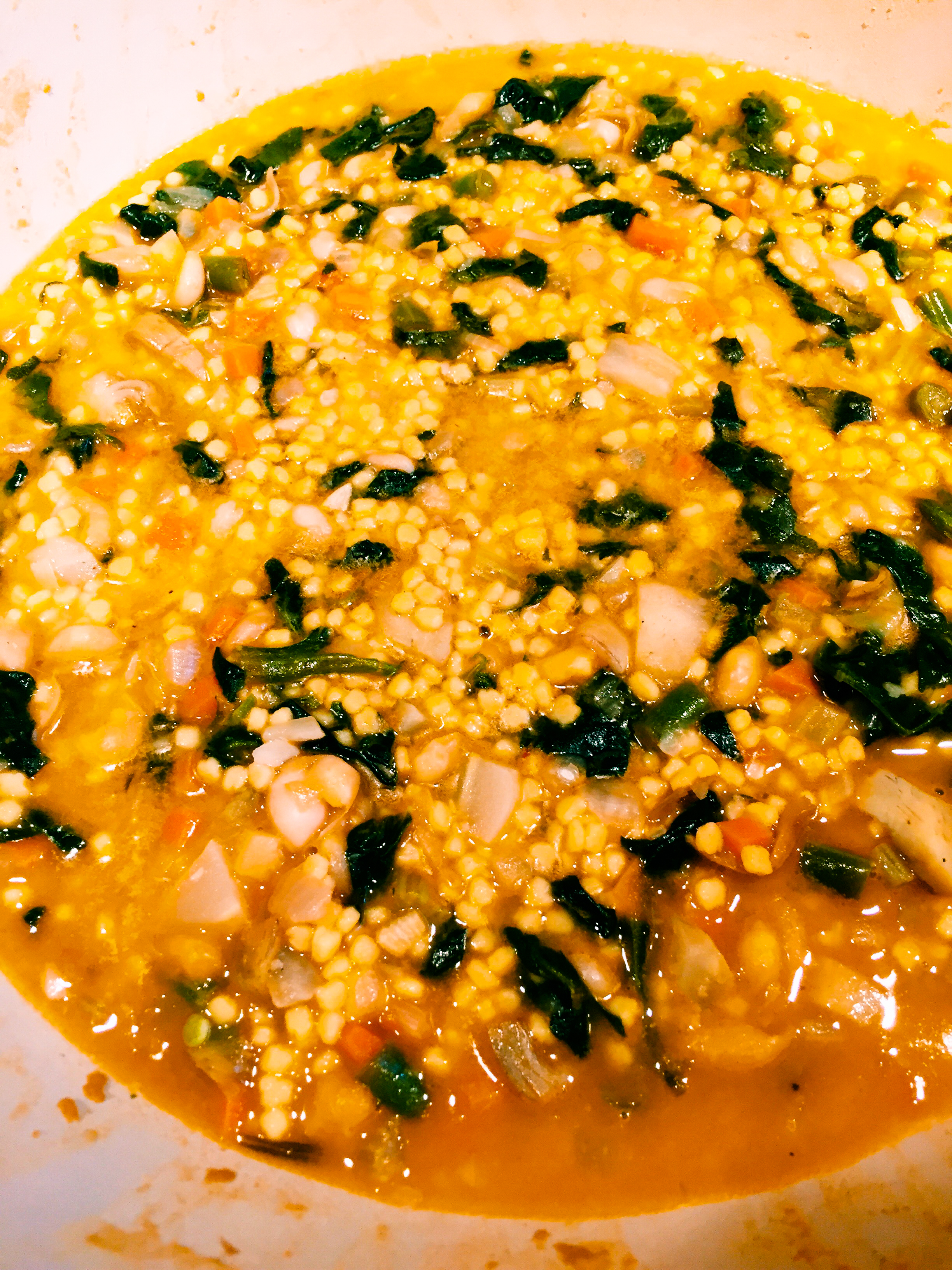 - Teff polenta, with vegetable stock, carrots, split peas, parsnips