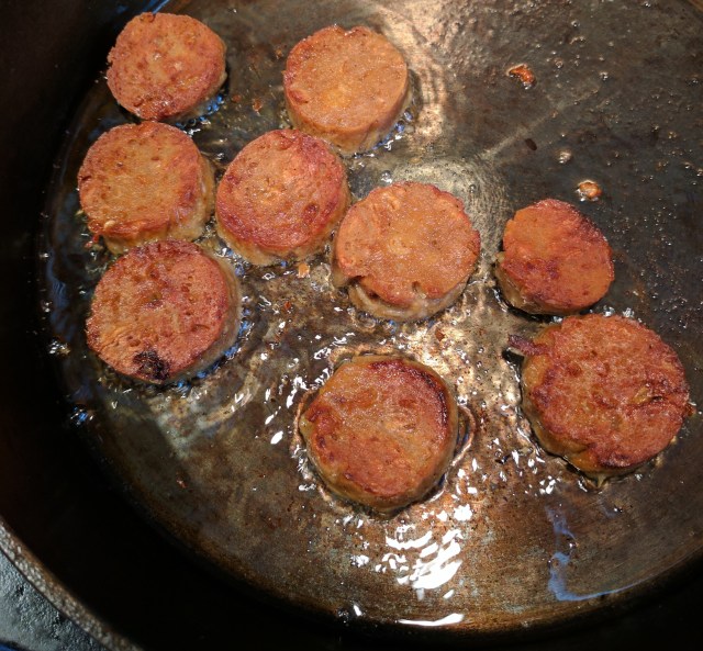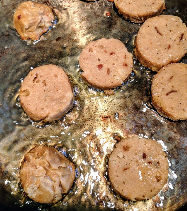 My first order of business was to make vegan sausage, just because I had some Vital Wheat Gluten and Nutritional Yeast, two components of Isa Chandra Moskowitz’s recipe which I had made once before. It took about an hour to make the mix, steam the sausages, and chill them for use. In the meantime, I had just read an article in the NY Times online about Gascony, and I was getting hungry. Based on the article, I was in a duck fat, Southwestern France frame of mind, but also thinking vegan, so I started looking up recipes for what I could do with the unlikely combination of lentils, beans, sausage, and rye berries. A few recipes caught my eye, but especially this one: Wheat Berry and Lentil Salad, so I adapted it to what I had, and the results were marvelous.