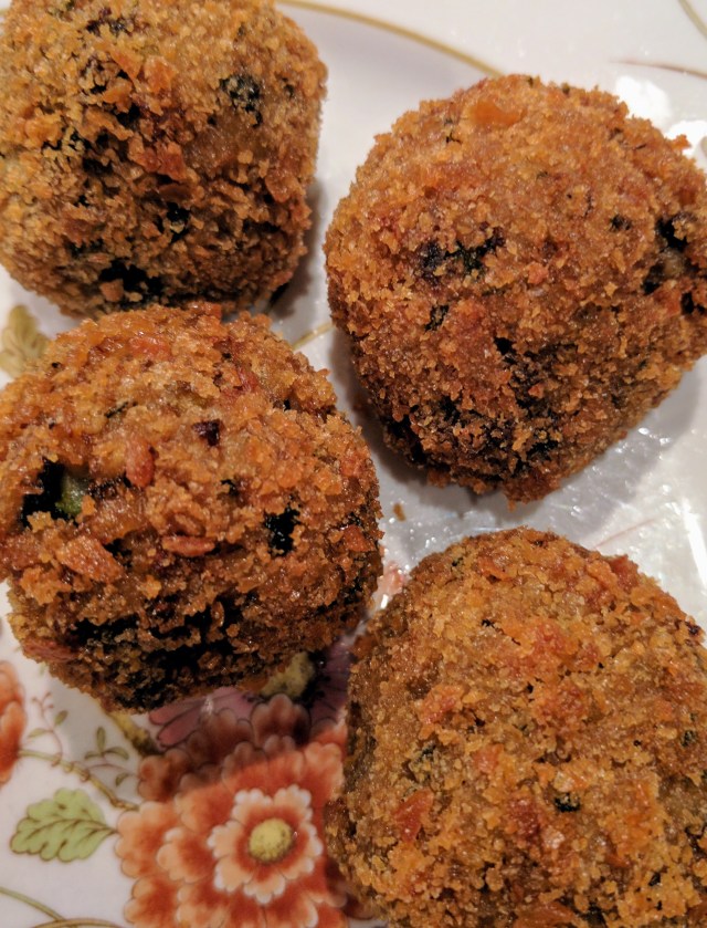 For Saturday’s night’s meal, I made a simple Porcini Risotto. It was very good, and we had some leftovers which provided last night’s meal: