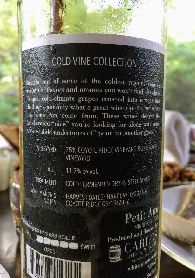 Other delights during these two months included a Lambrusco at SRV in Boston, a Corsican rosé, some vegetarian meals at home, and my very first wine from Minnesota (which was pretty good).