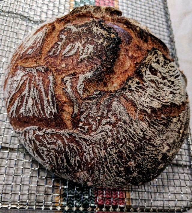 Upon arrival, they each had an cup of espresso. In the meantime, I was just finishing baking two loaves of bread — Forkish’s Overnight White Bread recipe, slightly adjust to 80% white bread flour, 10% home-milled Buckwheat flour, and 10% home-milled Triticale flour, instead of all white flour.