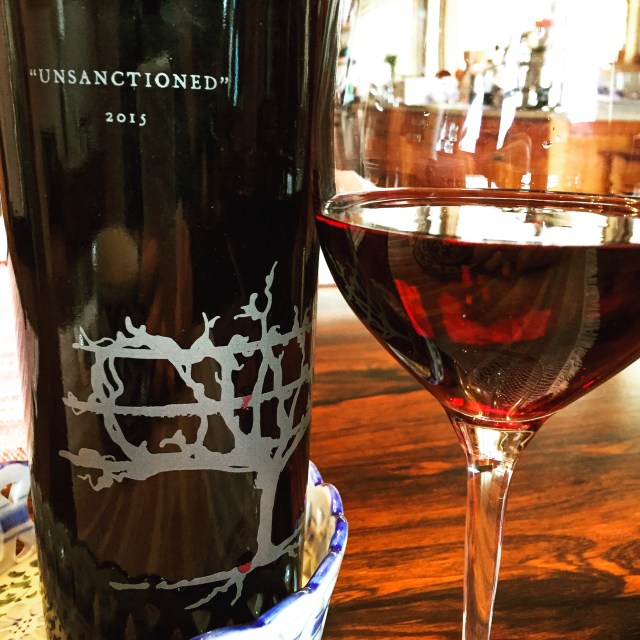 I also needed a first course, so I made dishes of two slices of beets with a filling between them of almond milk ricotta puréed with black olives, accompanied by toasted slices of fresh bread, plate of olives, plate of pickled items, and the remaining three small lunch box peppers. The beet stacks were plated atop a bed of fresh watercress and arugula. The wine was a bottle of Aaron’s Unsanctioned (50% Sangiovese, 50% Petite Sirah) from AZ.