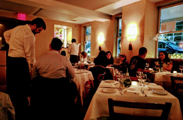 On the next block I found a small, neighborhood Italian restaurant that intrigued me, so I made a solo reservation for 7:00 PM.  Much to my delight, the restaurant (Novità) turned out to be the style of the intimate French restaurants I knew and loved in the city during the 1960’s and 70’s.  Family-owned, regular local customers, very good food and wine, visually delightful and warm, it was the perfect choice as the snow began to come down Tuesday night.  And it was one block from my apartment — my feet would stay dry that night.