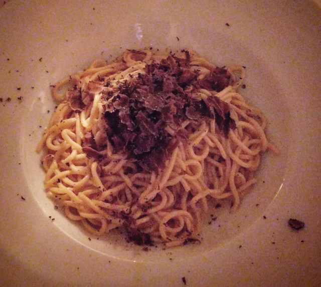 Dinner was first, a grilled wild mushroom salad (light touch on the olive oil) with baby spinach, followed by pasta with black truffles.  I think I had a glass of Barbaresco, but honestly, I can not remember.  Dessert is not on my list of things to eat, but a glass of Amaro was greatly welcomed.