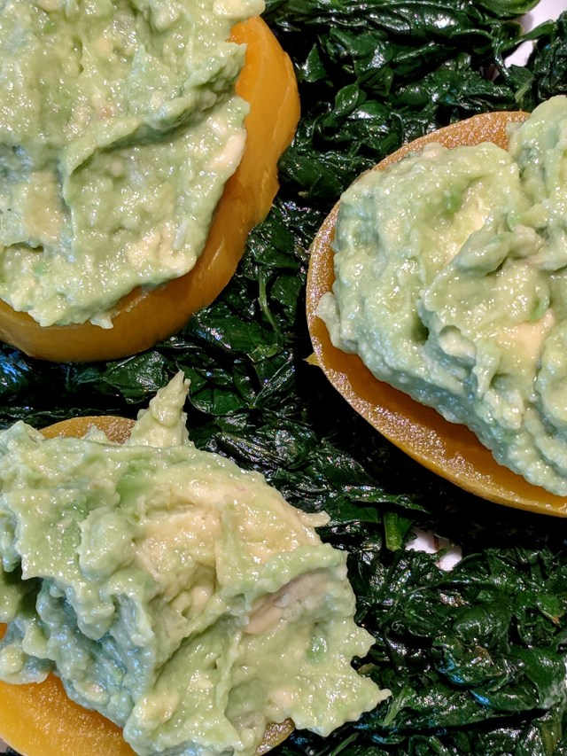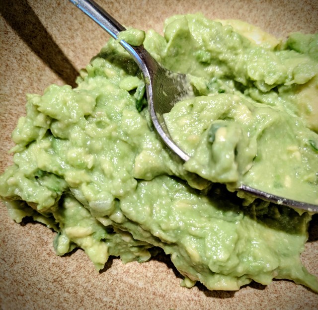Barbara makes guacamole often, and sometimes a good batch of avocado toast. However, I find these too bland for my palate. I want a lot of salt, acid, and spice, and her style ranges from little to none (she uses only one – avocado – of the 5 ingredients above). Today I pulled out my Molcajete (Mexican mortar, made in Thailand), and I made the dish MY way. Wow, what a difference!
