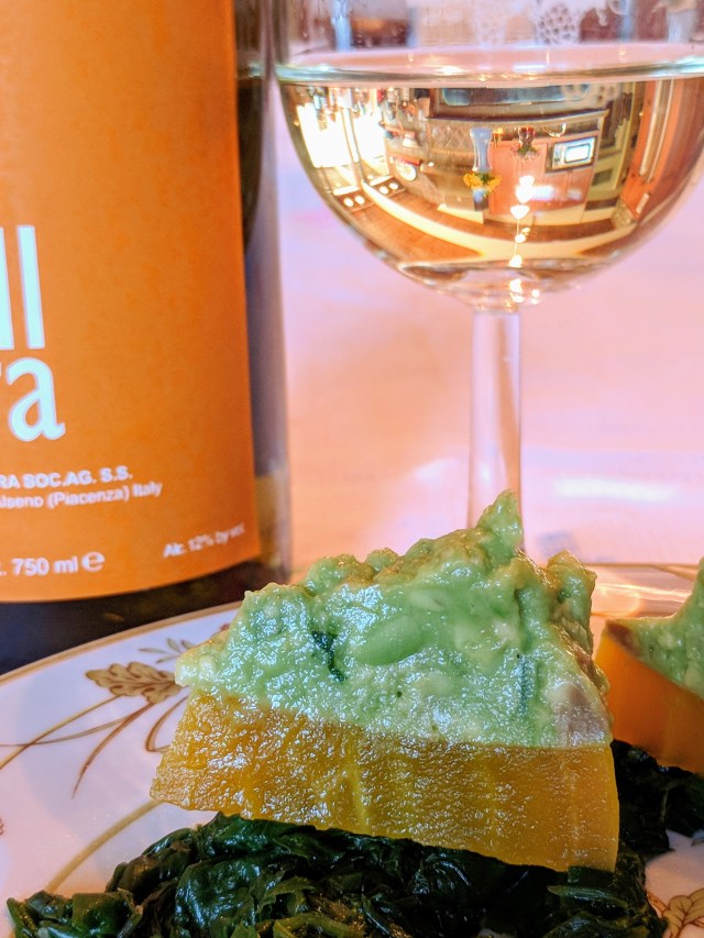 For example, today’s lunch: Golden Beets and Spicy Guacamole with a Malvasia di Candia Aromatica (from Piacenza, Emilia Romagna region, Italy).