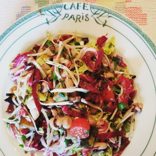 For lunch yesterday I went cuckoo, making a chopped salad with a variety of ingredients left over in the fridge.
