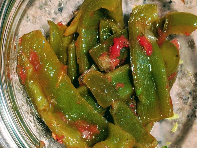I removed the peppers after cooking them with the stew; I then add them to my plate, since Barbara can’t eat them.