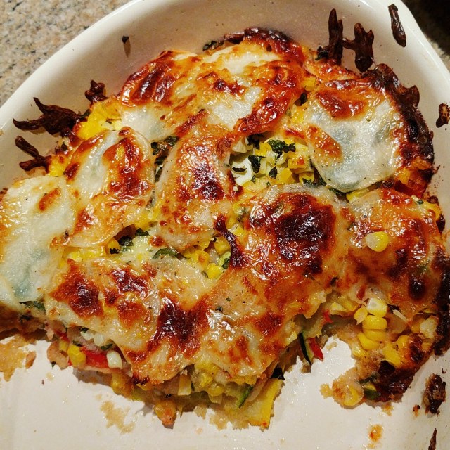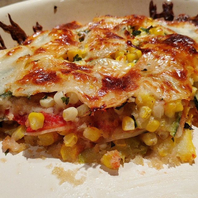 That describes tonight’s post. Barbara was inspired and made what is probably the best meal of the summer tonight, a Layered Vegetable Casserole. I held myself back after only 3 servings (not wanting to overdo it…).