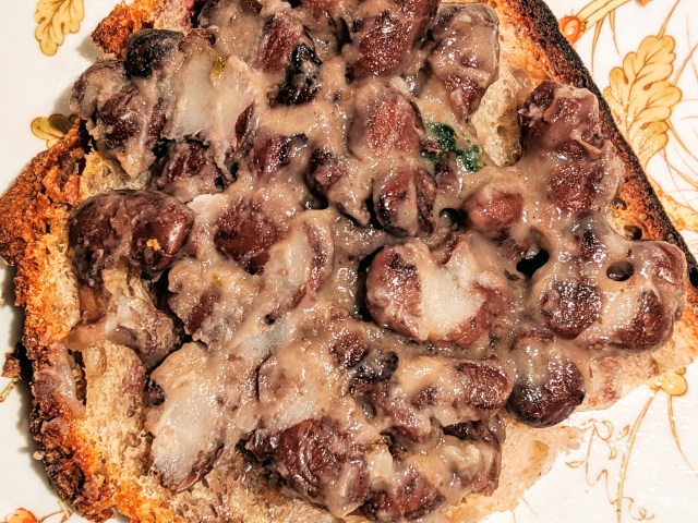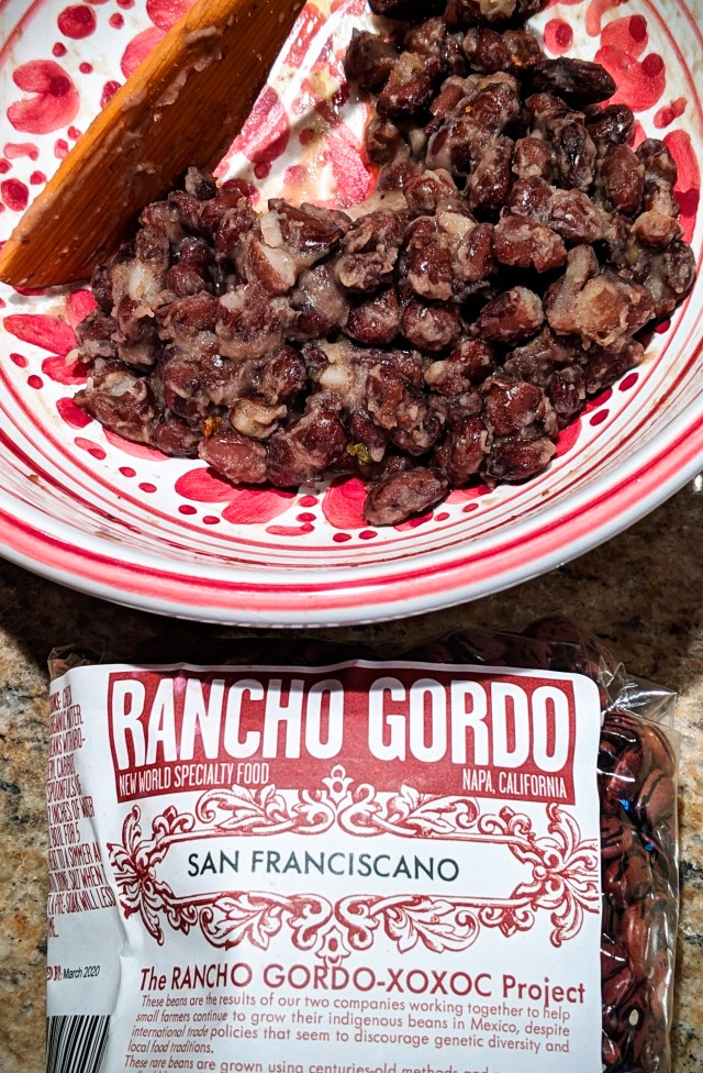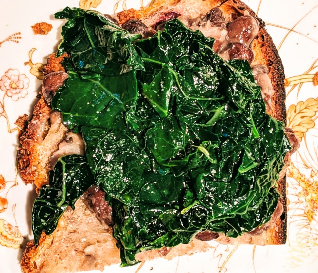 Puréed San Franciscano beans, topped with sautéed greens with salt and garlic — yummy.