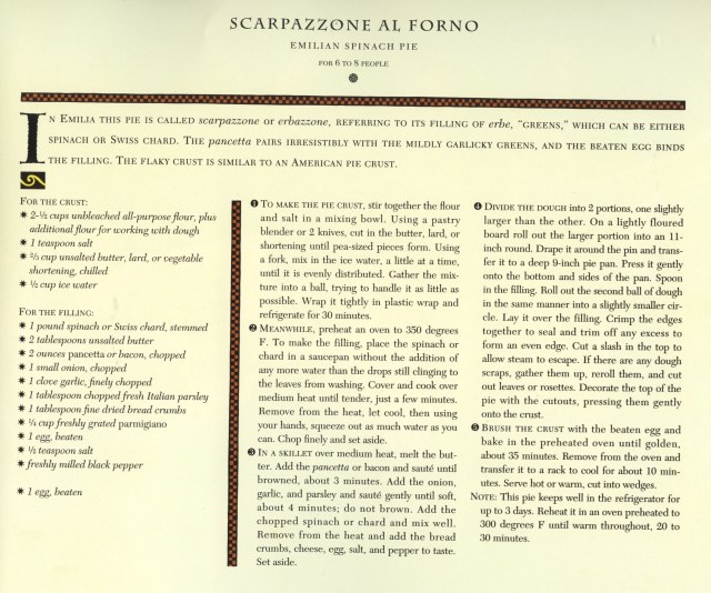 In keeping with our recent Emilian theme of Italian food and wine, Barbara had cooked a Swiss Chard and Spinach Pie for dinner the previous night, and we shared some of the leftovers tonight. To that, I added a variation of another recipe from the book, Zucchini and Eggplant Rolls, stuffed with Almond Milk Ricotta whipped with chopped grilled Vidalia onion, and a little tomato sauce. The wine was Tollara, also from Emilia Romagna, a white wine I have shared with you before, from Malvasia di Candia grapes.