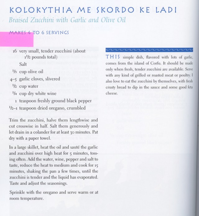 We’ll start with this delicious treatment of zucchini from the Greek island of Corfu.