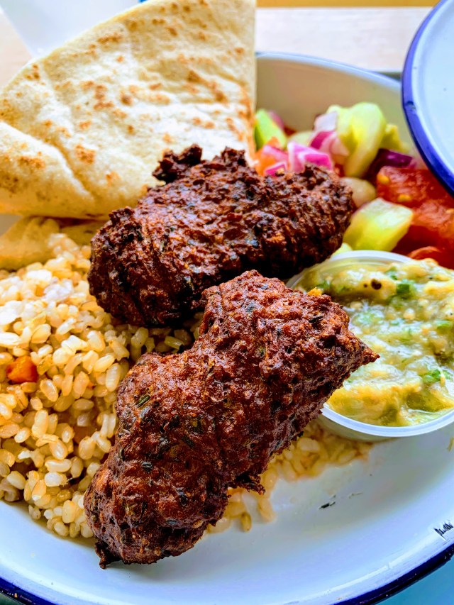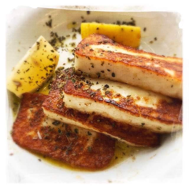 Across the street from the university is Saloniki Greek Restaurant, where I often have lunch after class. One of the best meals recently was their Impossible Burger (plant-based) meatballs with eggplant, pita bread and grains, along with a side order of Halloumi cheese with Lemon, Olive Oil and Oregano.
