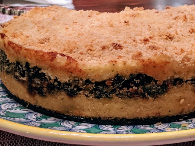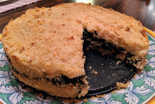 September was also a good month for our CSA — Small Farm in Stow, MA. One of the best dishes of the season was the torta Barbara invented for a fresh bunch of Swiss Chard. It featured Yukon Gold potatoes pressed through a Ricer, and it made great use of her homemade breadcrumbs from stale Tuscan Pane.