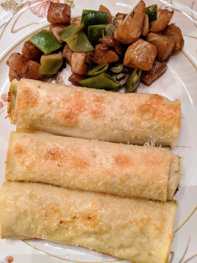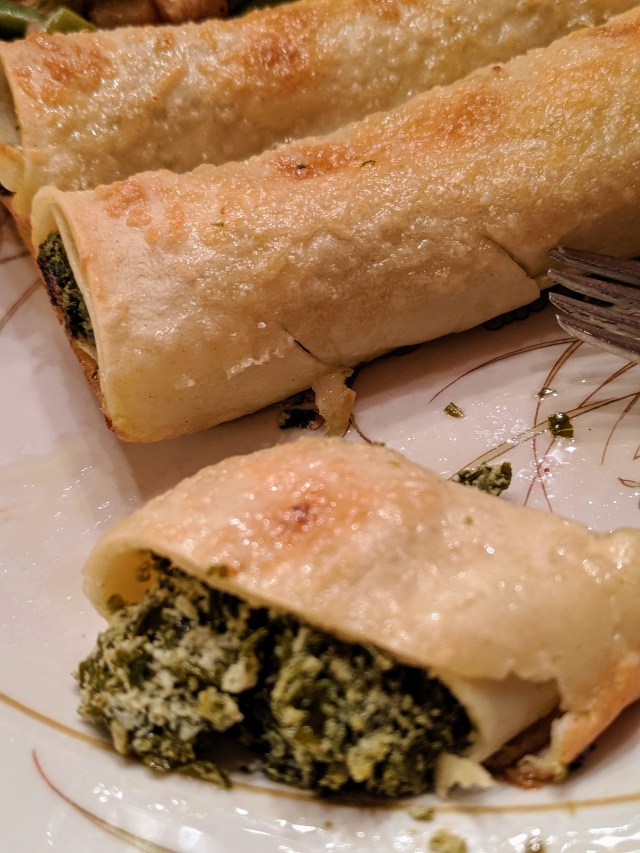 One day in October we were blessed with farm spinach and fresh almond milk ricotta from Kite Hill at Whole Foods. Immediately, I leaped into action, making my own pasta and turning that into a vegan Cannelloni, with a side dish of roasted salad turnips and Romano beans.