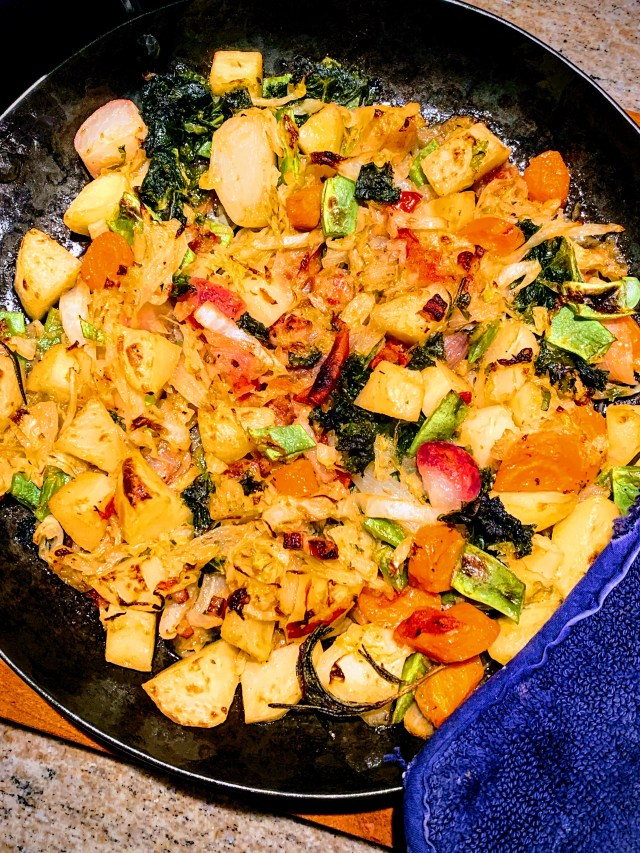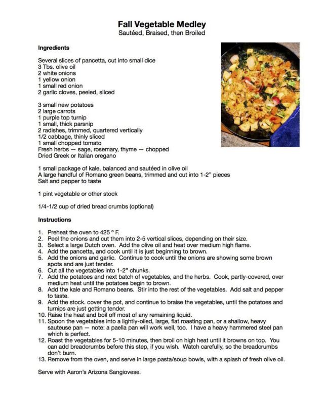 Another variant of the use-all-the -farm-fresh-vegetables and take advantage of the hammered steel pan was this Fall Vegetable Medley.