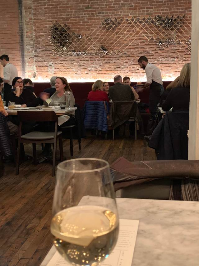On Monday night I stay in the city for dinner, instead of fighting the gruesome traffic on the way home at 5 PM. This week I took the bus along Mass. Ave. to SRV, a good Venetian-style restaurant on Columbus Avenue. As usual, a glass of wine began the evening — in this case, an Arneis.